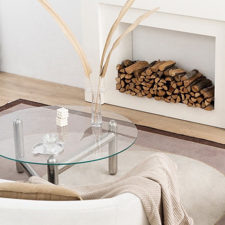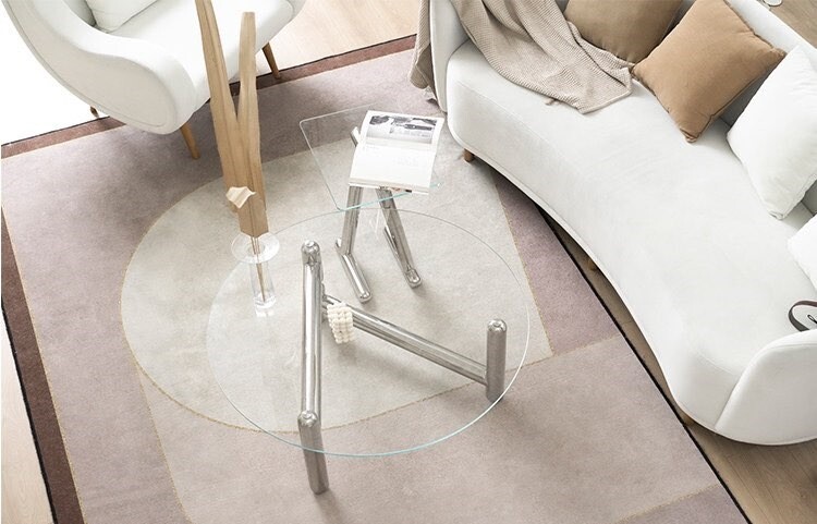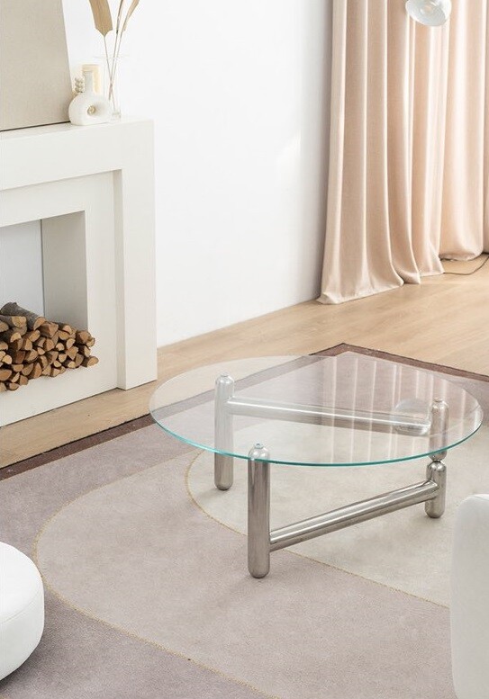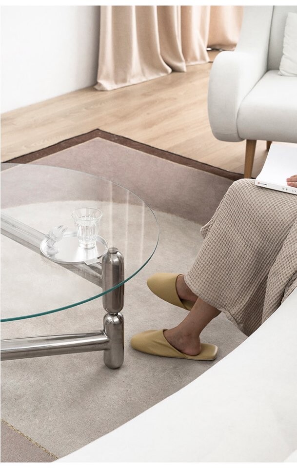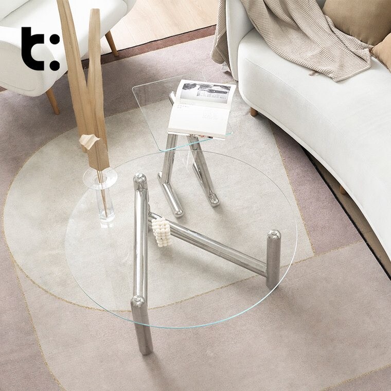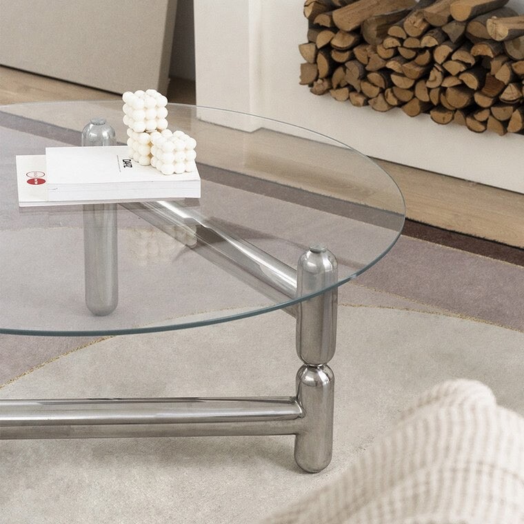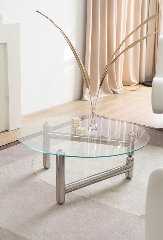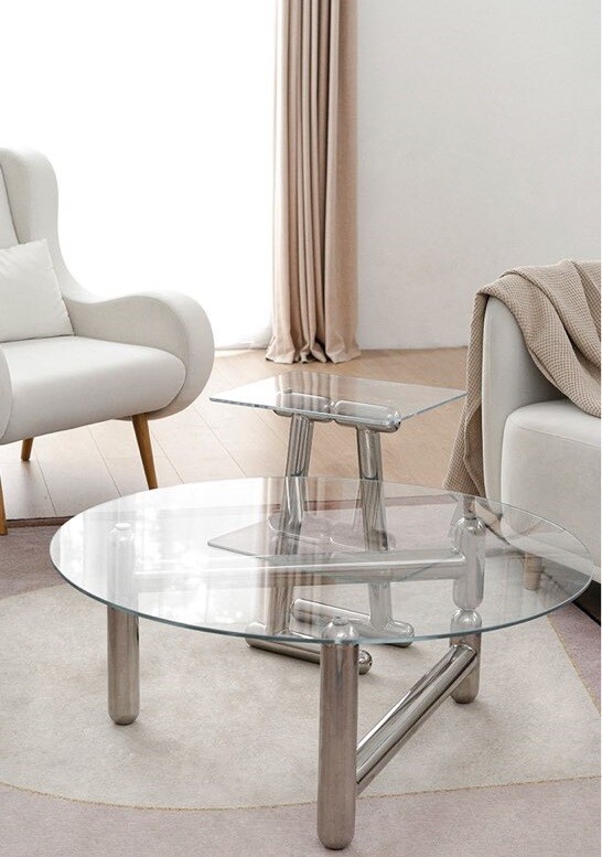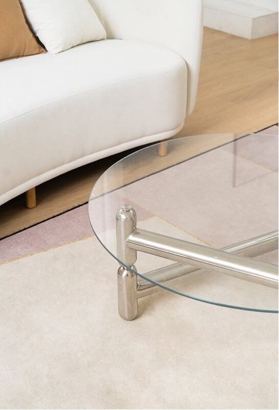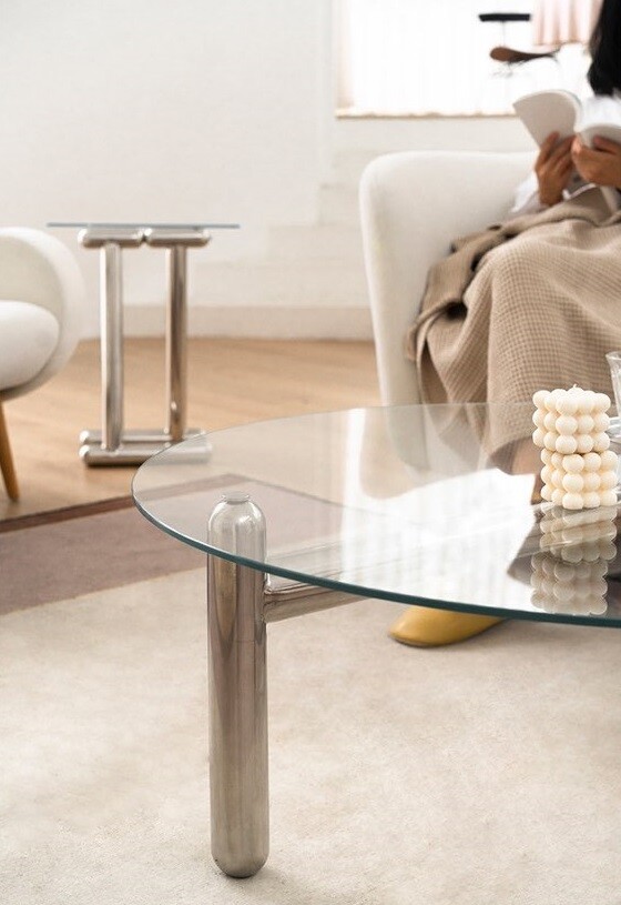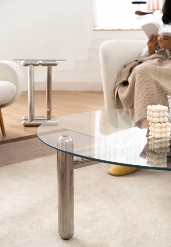 글라스 철재 원형 크롬 유리 커피테이블