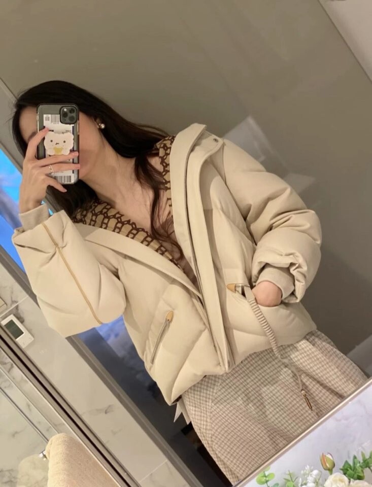 에르 H 테크니컬 캔버스 쇼트다운 하프 구스다운패딩 점퍼