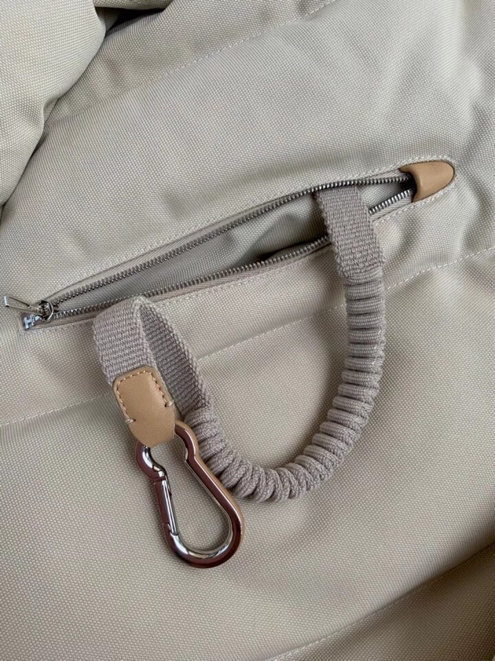 가죽파이핑 슬리브와 스트랩및 스냅훅 장식의 포켓내부가 있어
