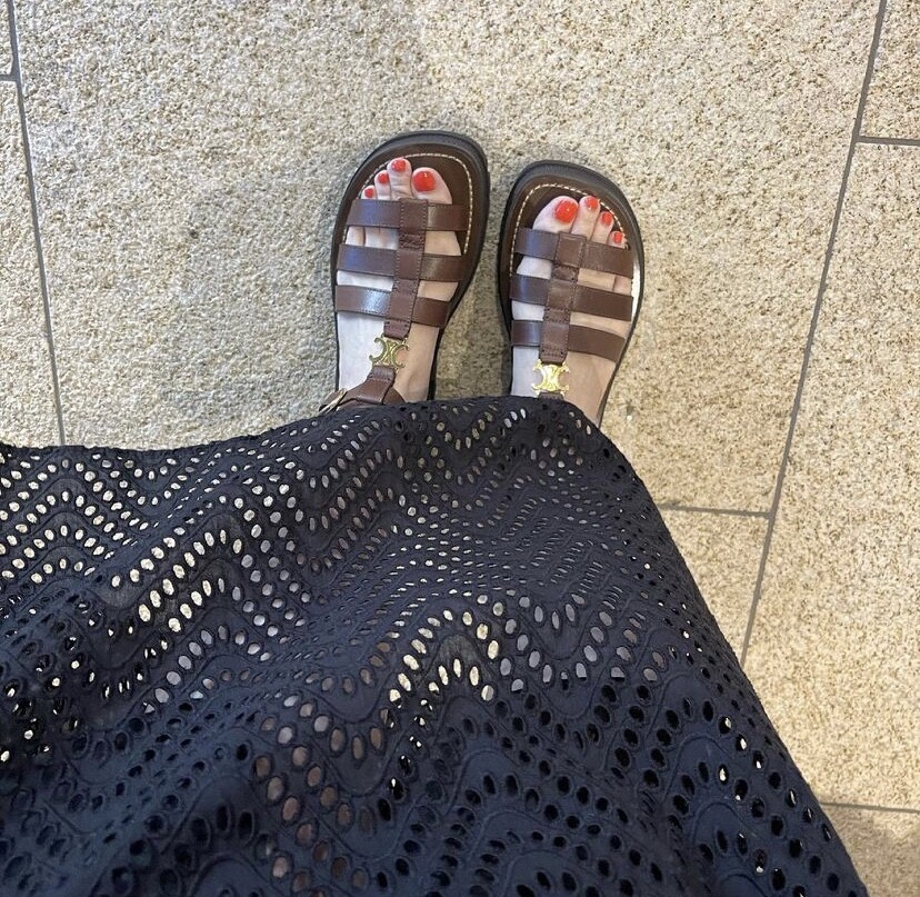 골드 스트랩으로 연결된 샌들입니다.