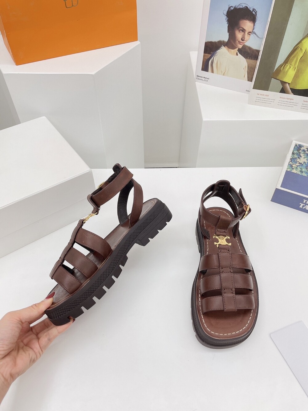 " 셀린 트리오페 골드 클레아 스트랩 샌들 "