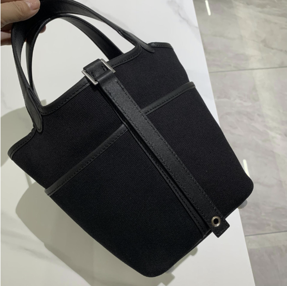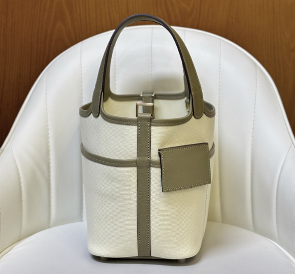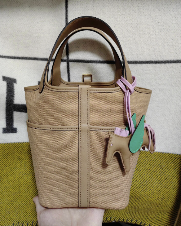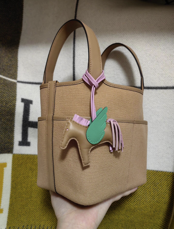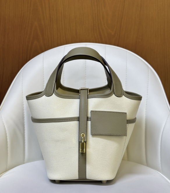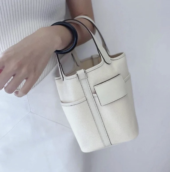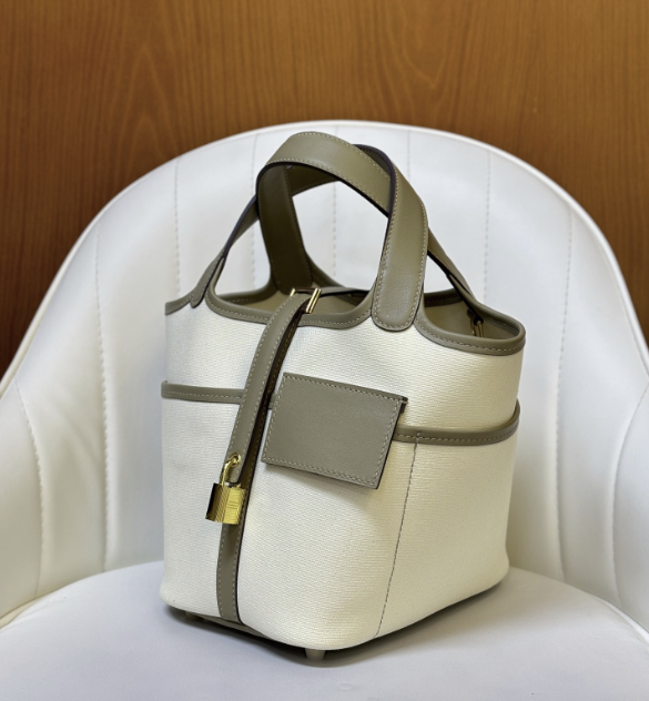가죽 조임끈 및 자물쇠, 외부 포켓 2개, 내부 수납공간 4개로 구성되어 있으며