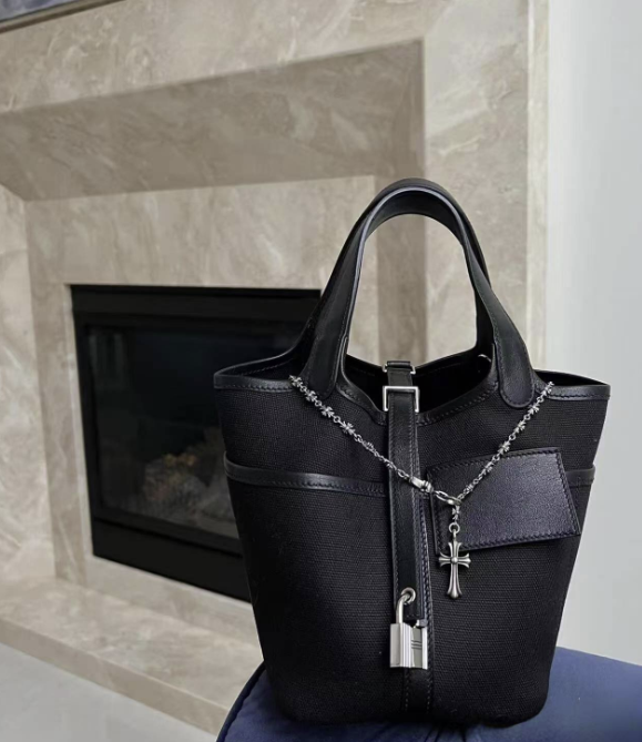백화점에서 볼 수 있는 것처럼 순수 스틸 소재에 왁스 처리된 실로 손으로 꿰맨 하드웨어를 사용했습니다.