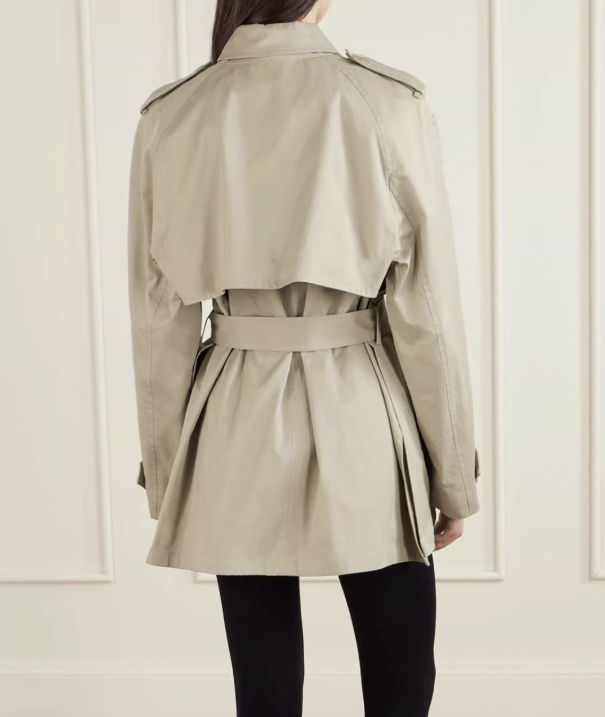 코튼 100%의 하프기장의 트렌치코트입니다
