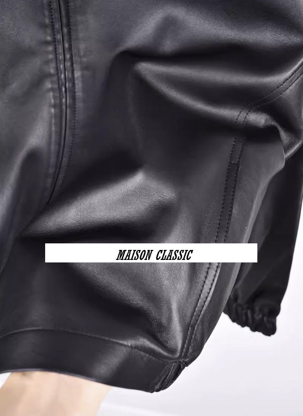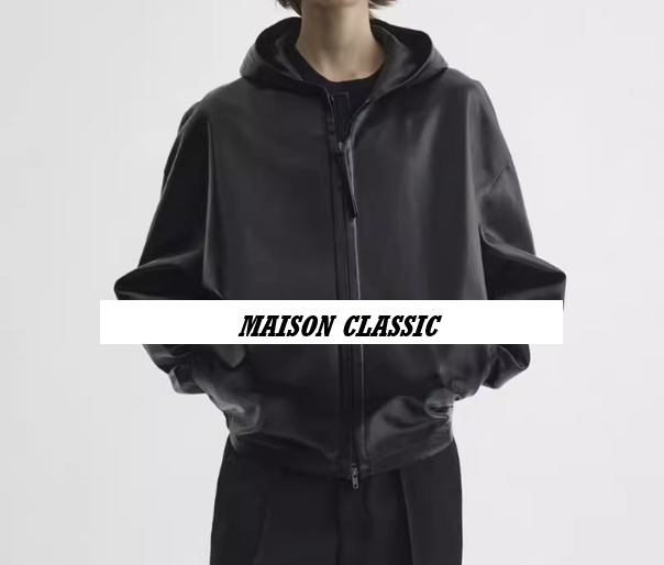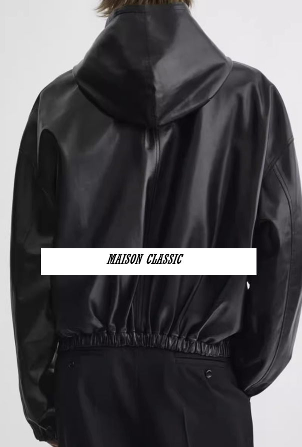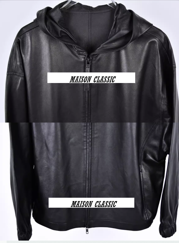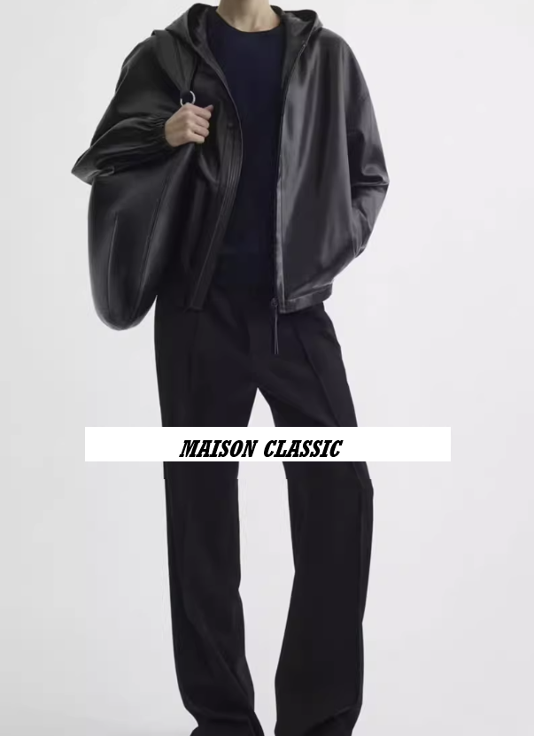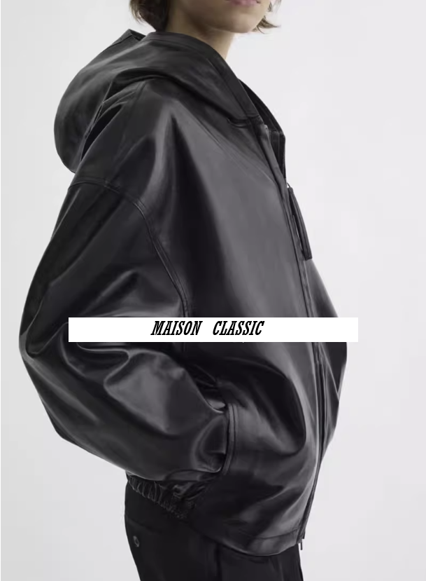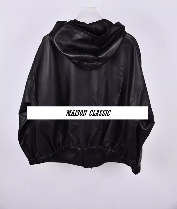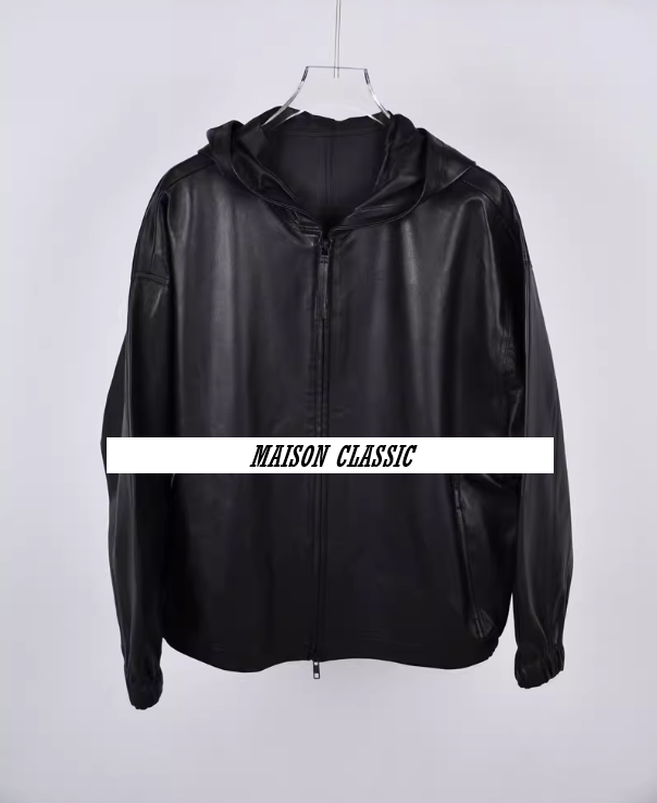 이 가죽 재킷은 후드가 달린 단층 재킷 스타일로 가볍고 스타일리시합니다.