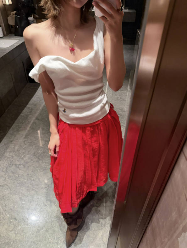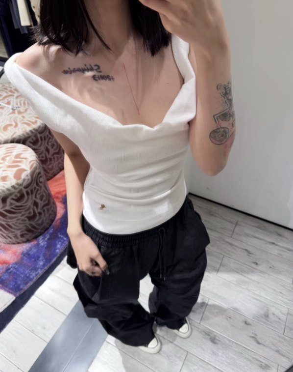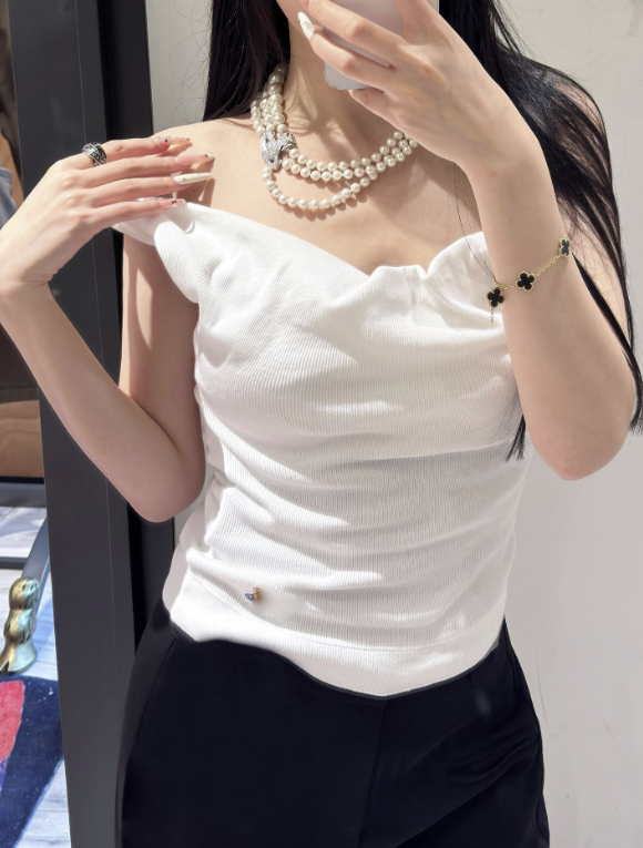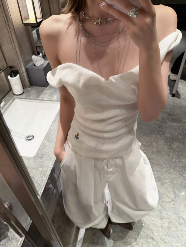 드레이핑 느낌의 오프숄더 탑 제품으로 여성스러움이 배가 되는 제품입니다