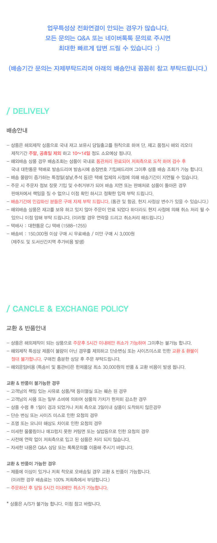 <구매 전 아래 인포/배송/반품안내 사항 꼭 읽어주세요>