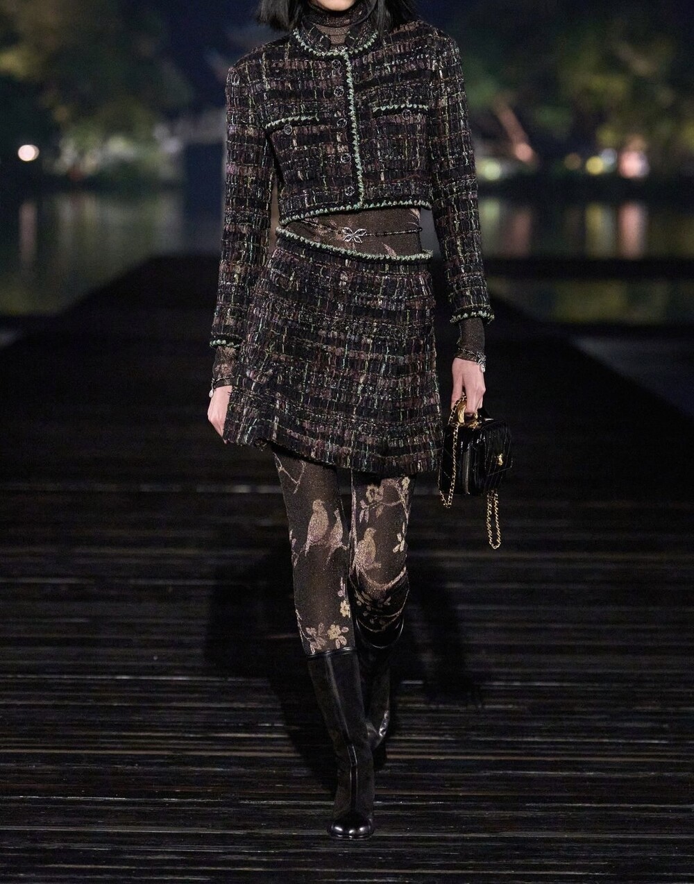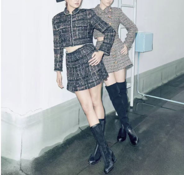 트위드원사와 크롭디자인의 투피스세트가 조화롭게 어우러진 제품으로