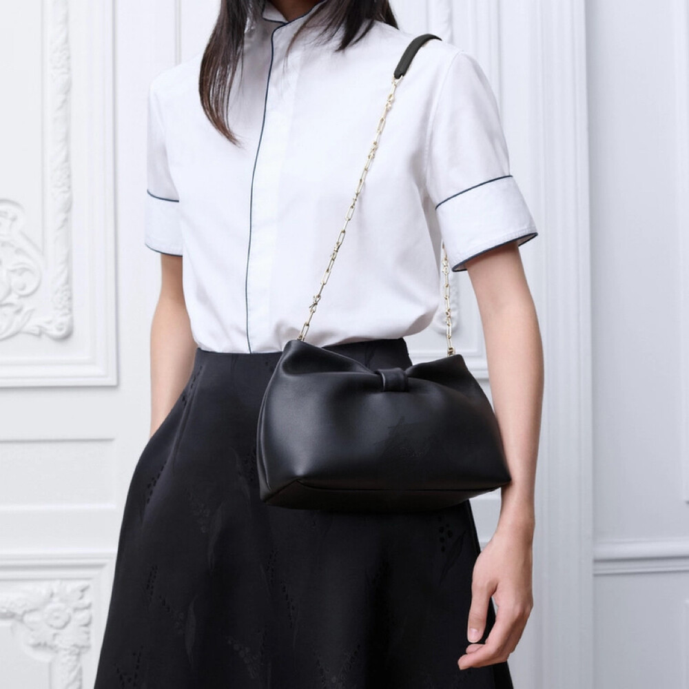 세미 글로스 피니시의 고급스러운 내추럴 가죽 소재로 제작되었으며, 유연한 실루엣에 D* Bow 백입니다.