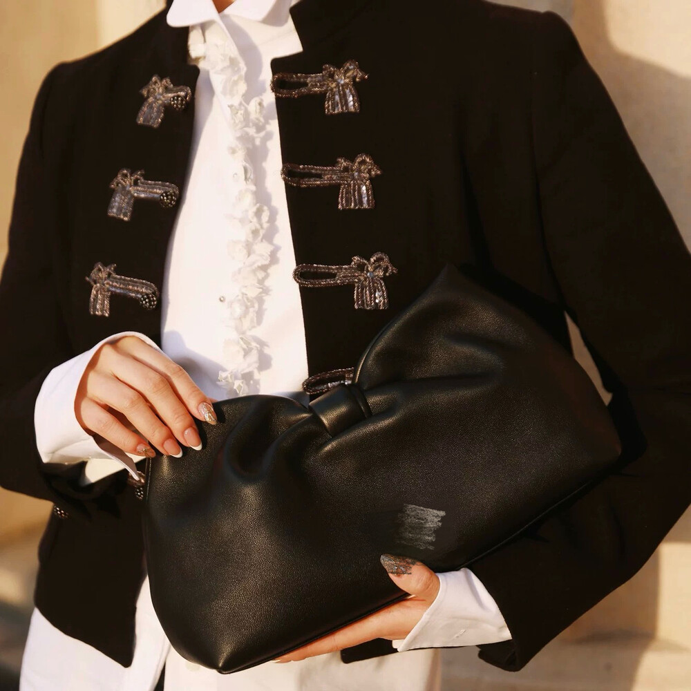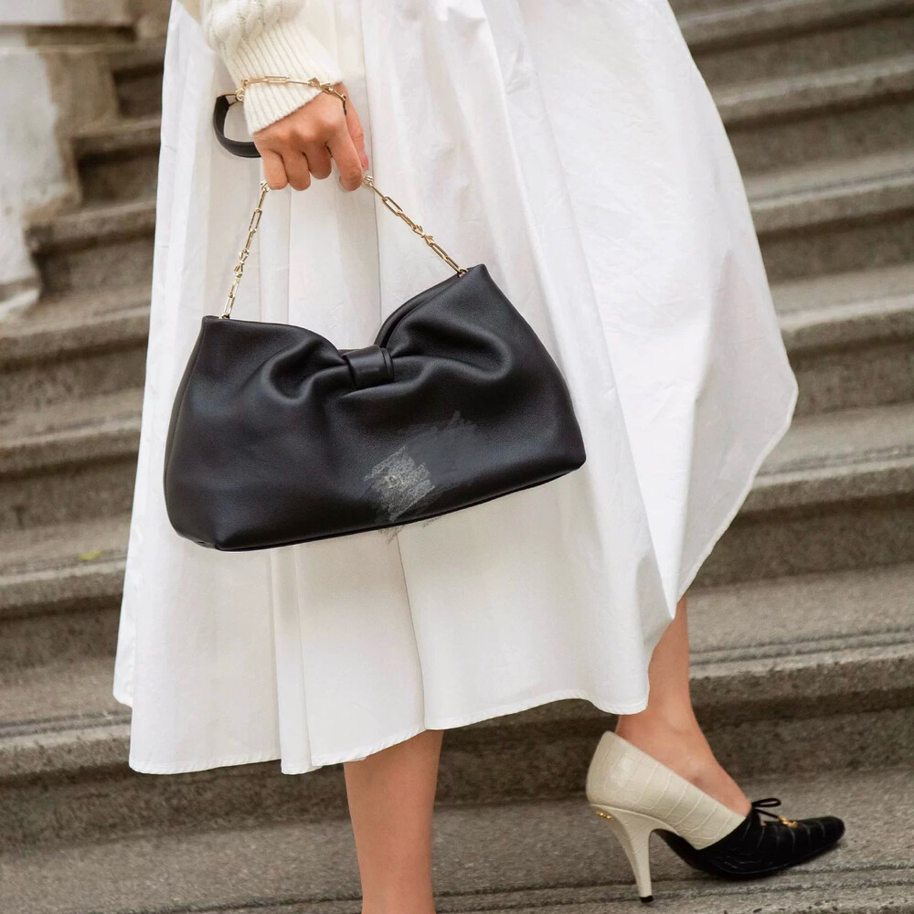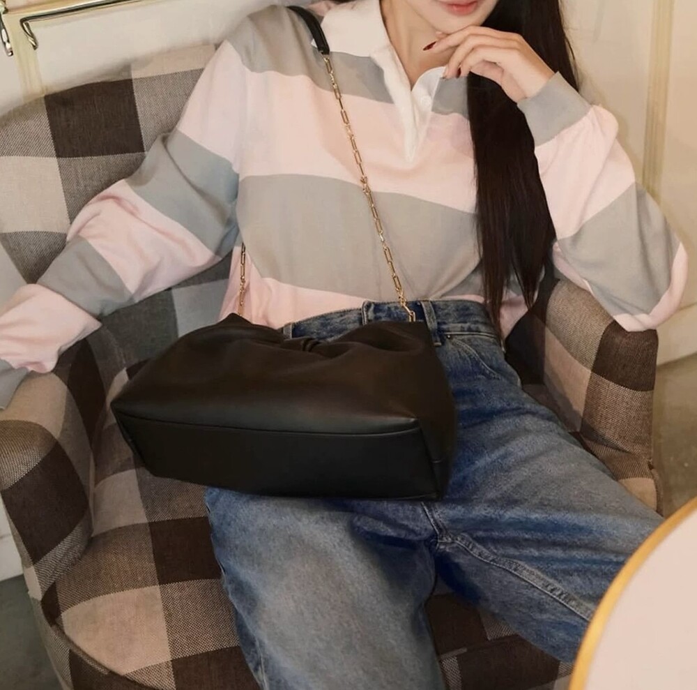 숄더백 또는 클러치백으로 연출할 수 있습니다