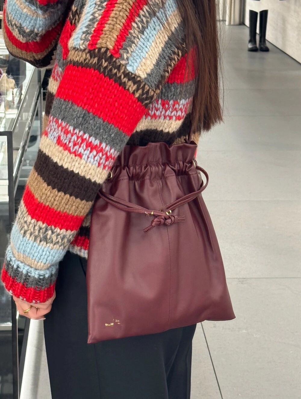 이 가방은 부드럽고 주름진 양가죽으로 만들어졌으며, 구름처럼 포근한 촉감을 가지고 있습니다.