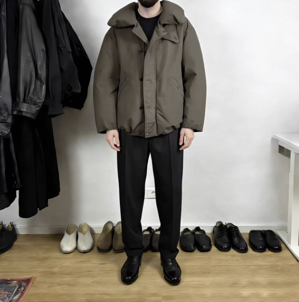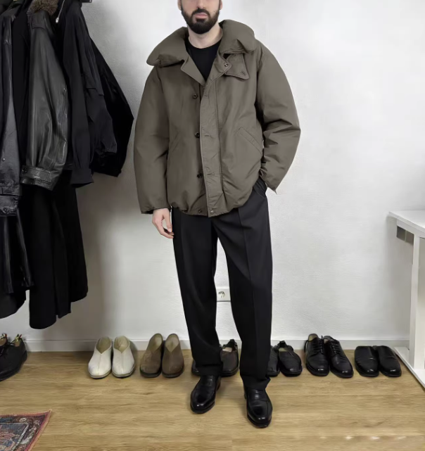 원단은 면과 린넨 혼방입니다.린넨은 원단에 탄탄하고 주름진 느낌을 주는 반면, 면은 부드러움을 더하고 무광택 마감을 제공하여 다운의 부피감을 효과적으로 줄여줍니다.동시에 린넨은 통기성이 좋고 습기를 잘 흡수하여 답답함을 줄여주며, 천연 섬유 특유의 약간의 주름은 더욱 캐주얼하고 편안한 느낌을 줍니다.면 소재를 첨가하면 원단의 탄력성이 효과적으로 향상되어 일상적인 착용 중 마모가 덜하고 내구성이 보장됩니다.순면 안감부드럽고 섬세하여 피부에 직접 닿아도 자극적이지 않으며, 따뜻한 공기층을 형성하여 온기를 유지해줍니다.순면의 극세사 구조는 수분을 흡수하여 몸을 건조하게 유지하고 정전기 발생과 답답함으로 인한 불편함을 방지합니다.넉넉한 드롭 숄더 실루엣에 부드럽고 여유로운 라인, 불필요한 장식을 배제하여 편안하고 자연스러운 느낌을 주며 다양한 체형에 잘 어울리는 뛰어난 활용성을 자랑합니다.넉넉한 라펠 디자인은 보온성과 스타일을 동시에 만족시켜줍니다