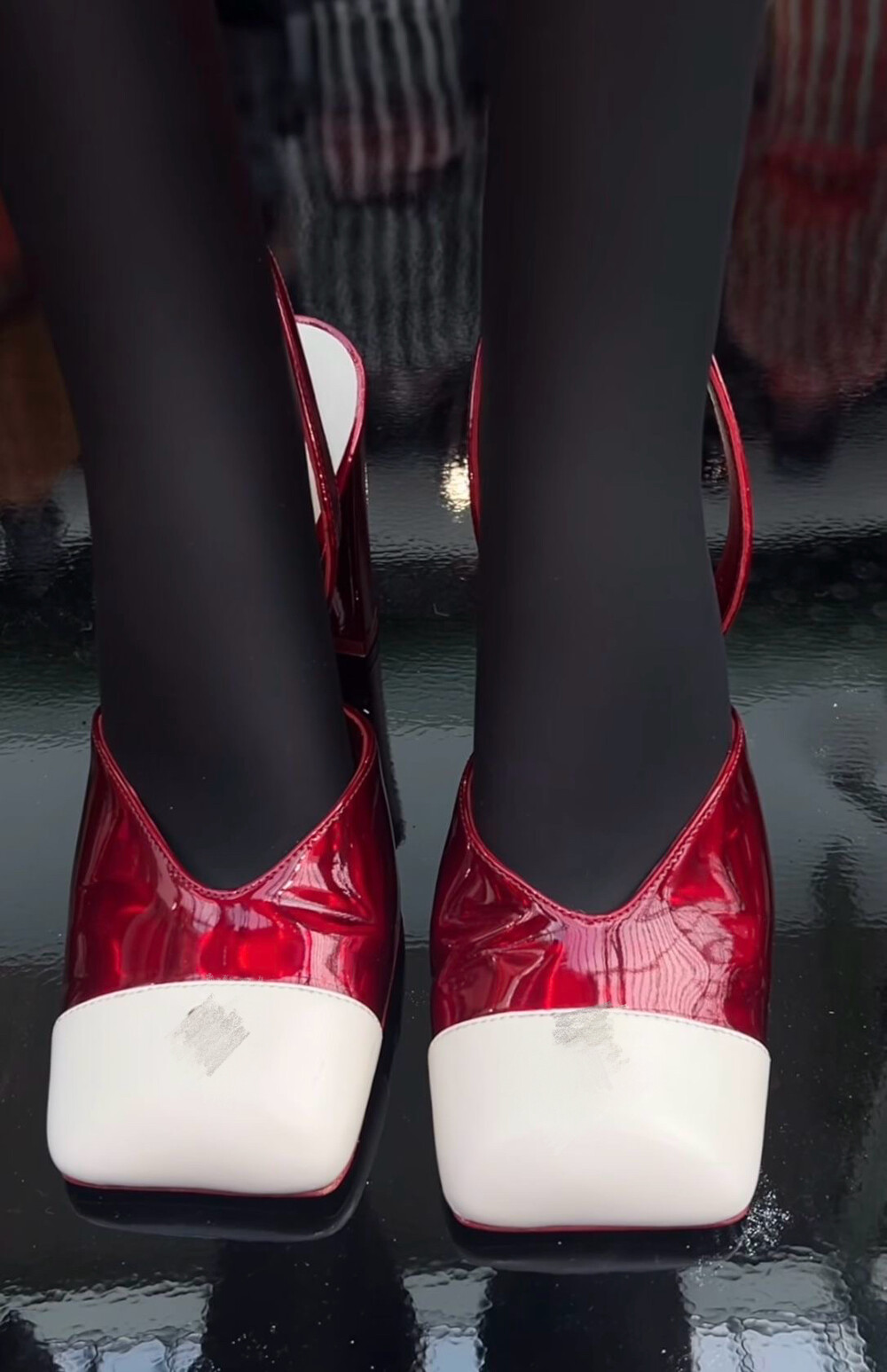 스퀘어토 디자인의 슬링백 디자인의 구두입니다