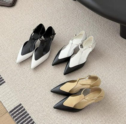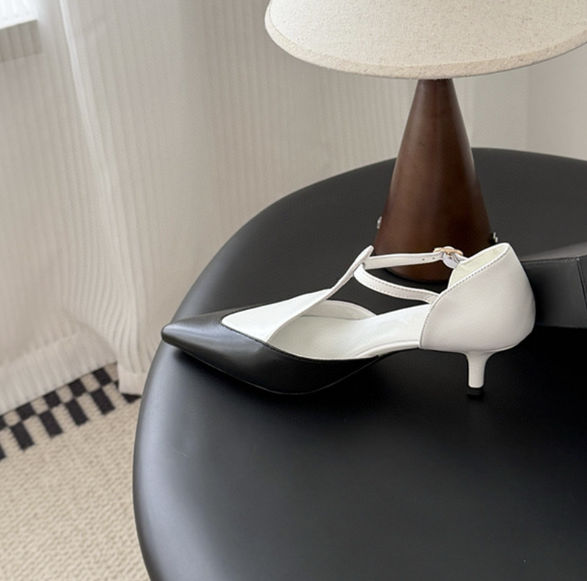 T스트랩 스틸레토힐 디자인의 데일리 슈즈로
