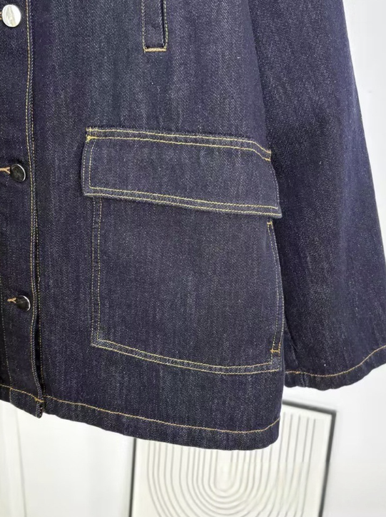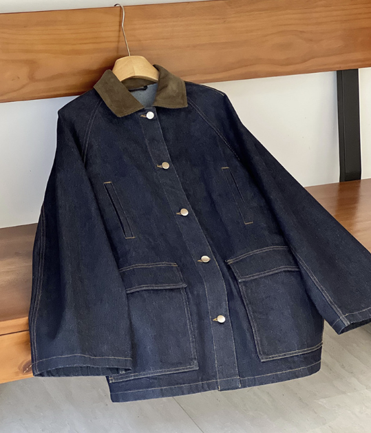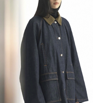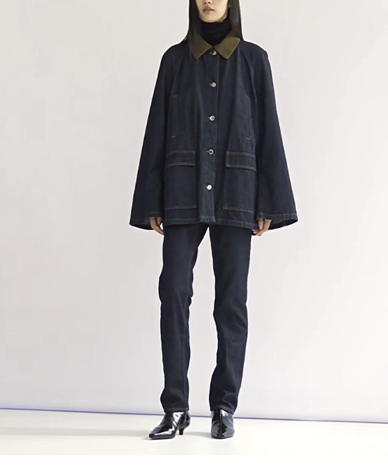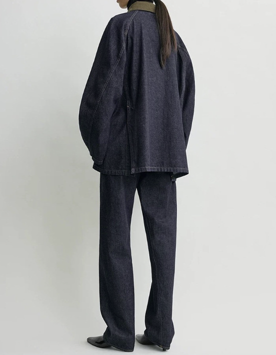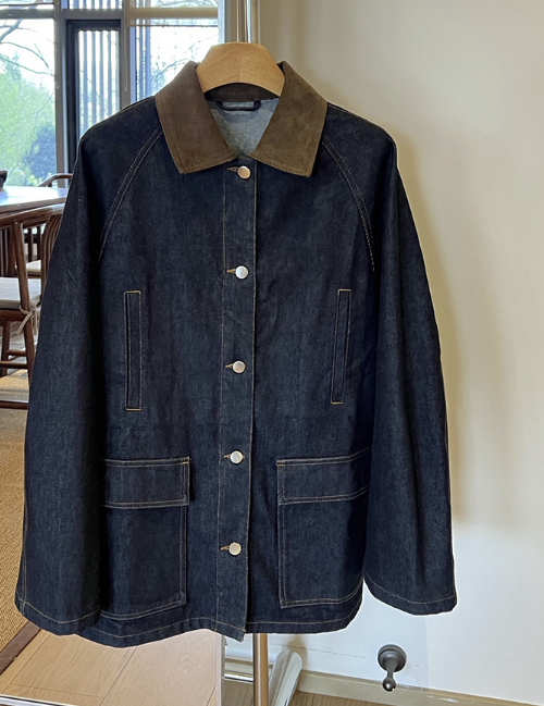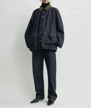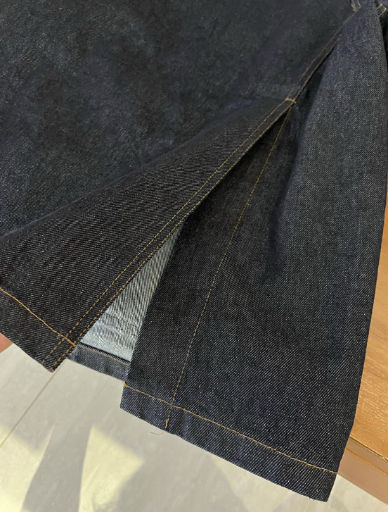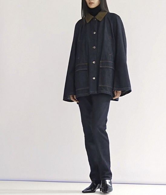 100% 면 데님 원단으로 제작되어 데님 특유의 바삭한 질감을 그대로 유지합니다.