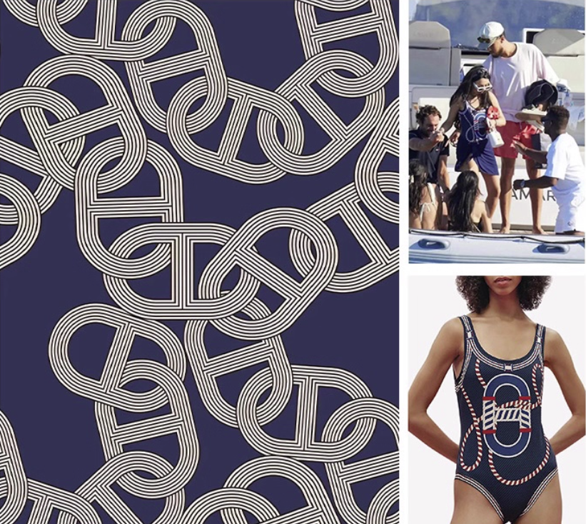 H* T샹딸 빈티지 체인 마린 스윔 원피스 수영복