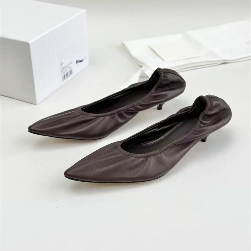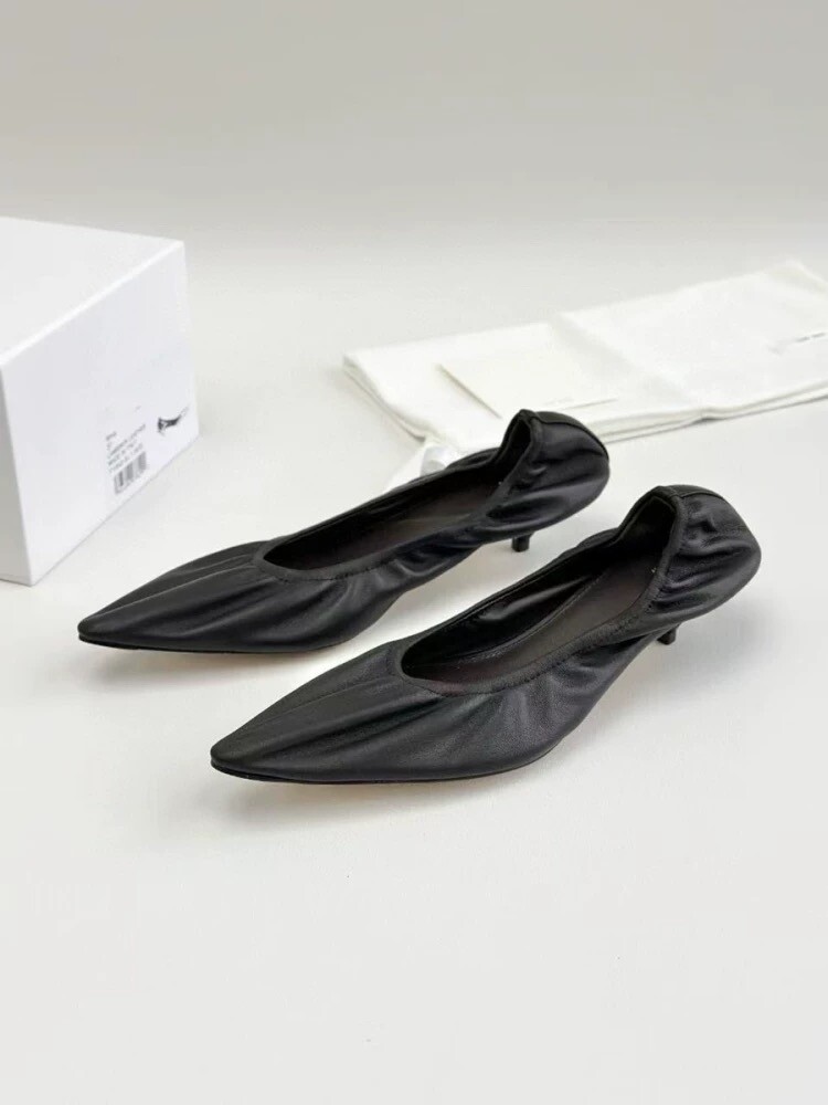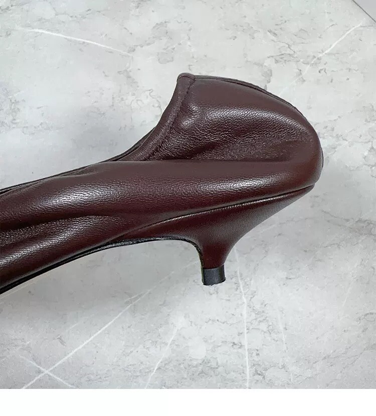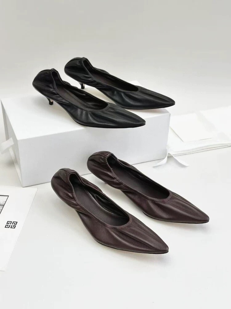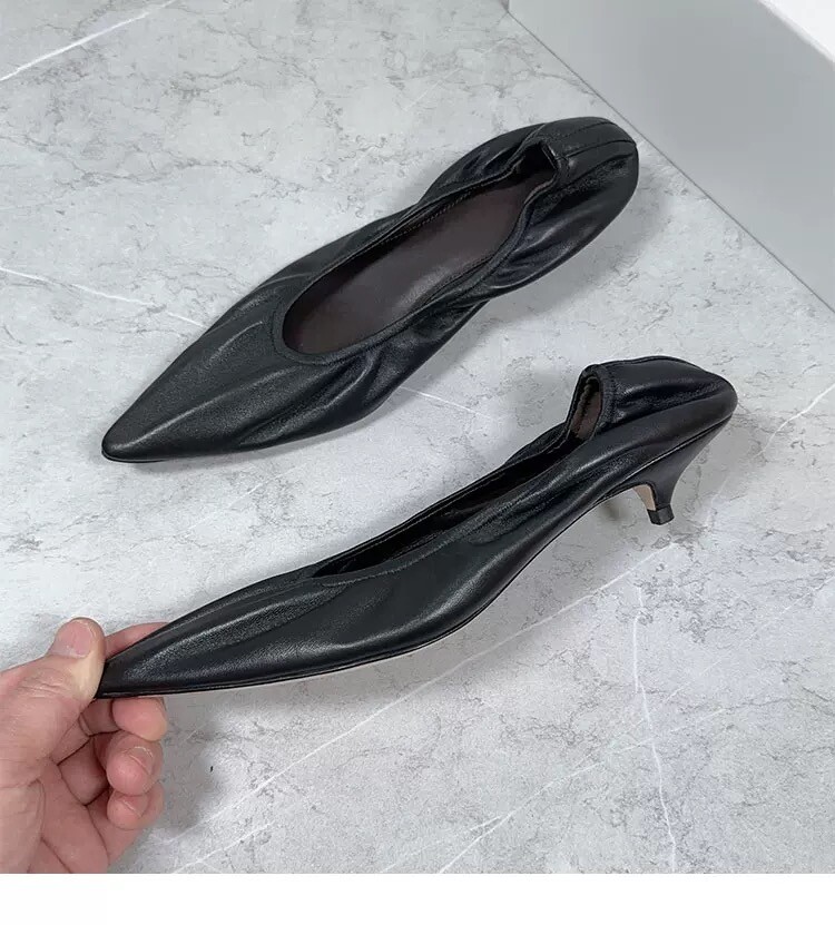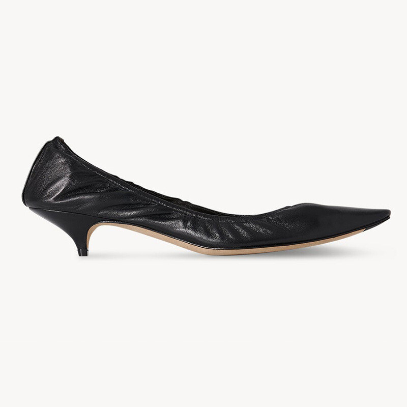 매끄러운 램스킨 힐.•포인트 토•신축성 있는 앵클 패널• 램스킨 안감• 키튼 힐