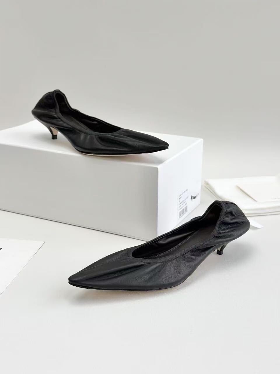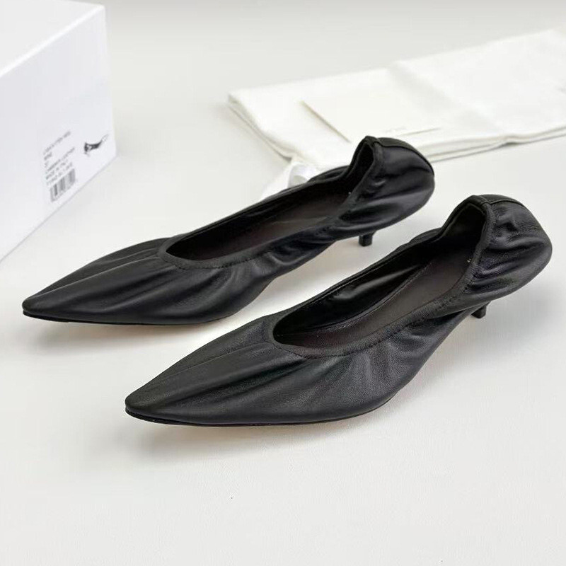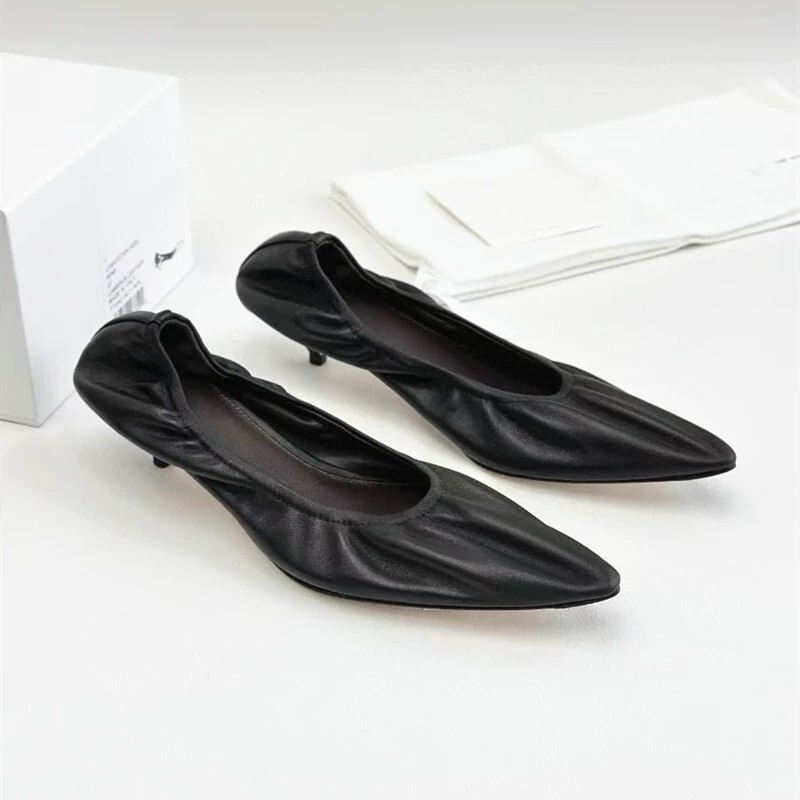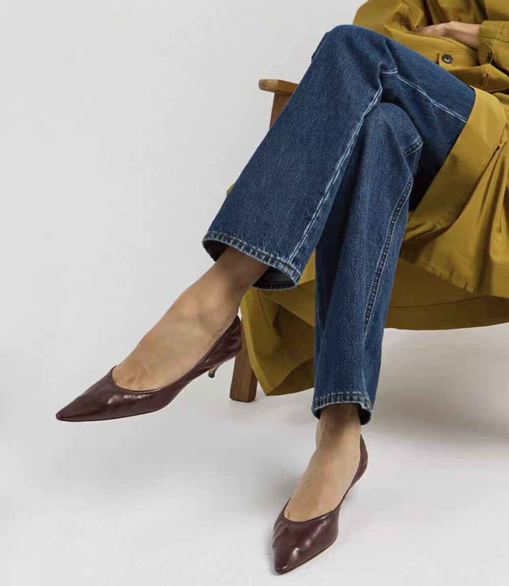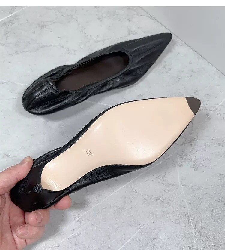 매끄러운 램스킨 힐.•포인트 토•신축성 있는 앵클 패널• 램스킨 안감• 키튼 힐