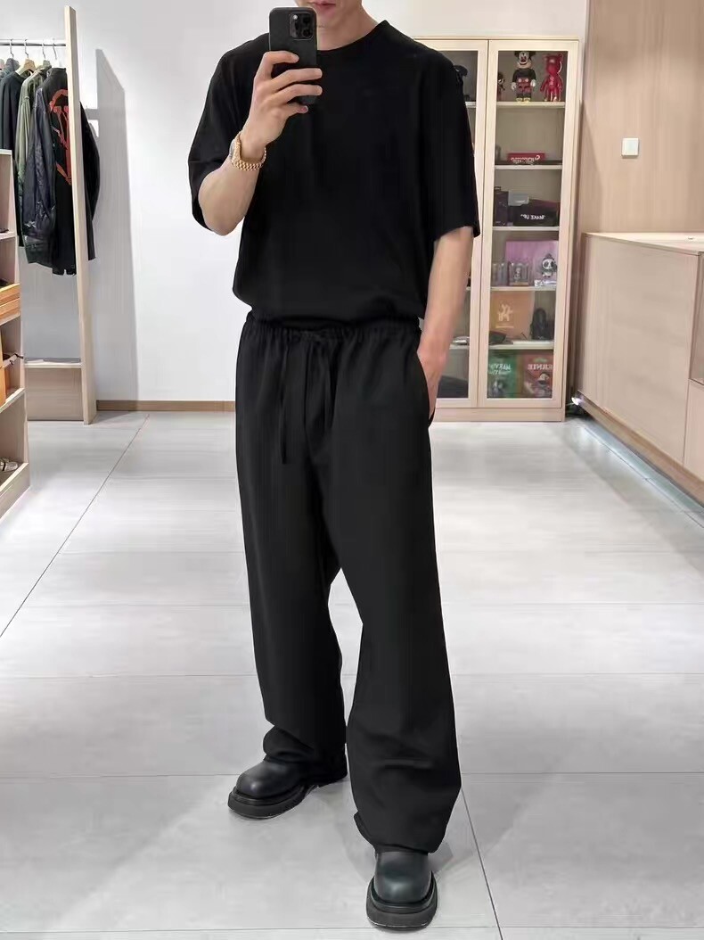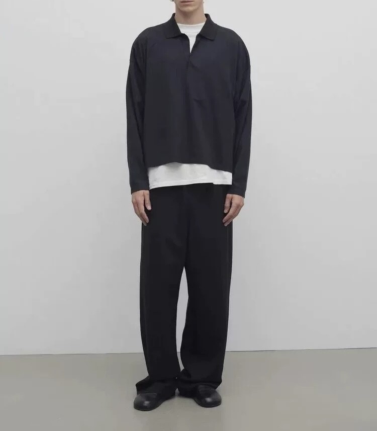 전체적으로 스트레이트 레그 팬츠로 살짝 루즈한 핏이지만, 루즈하면서도 슬림한 핏으로 다리가 길어 보이는 효과가 매우 깔끔하고 단정합니다.