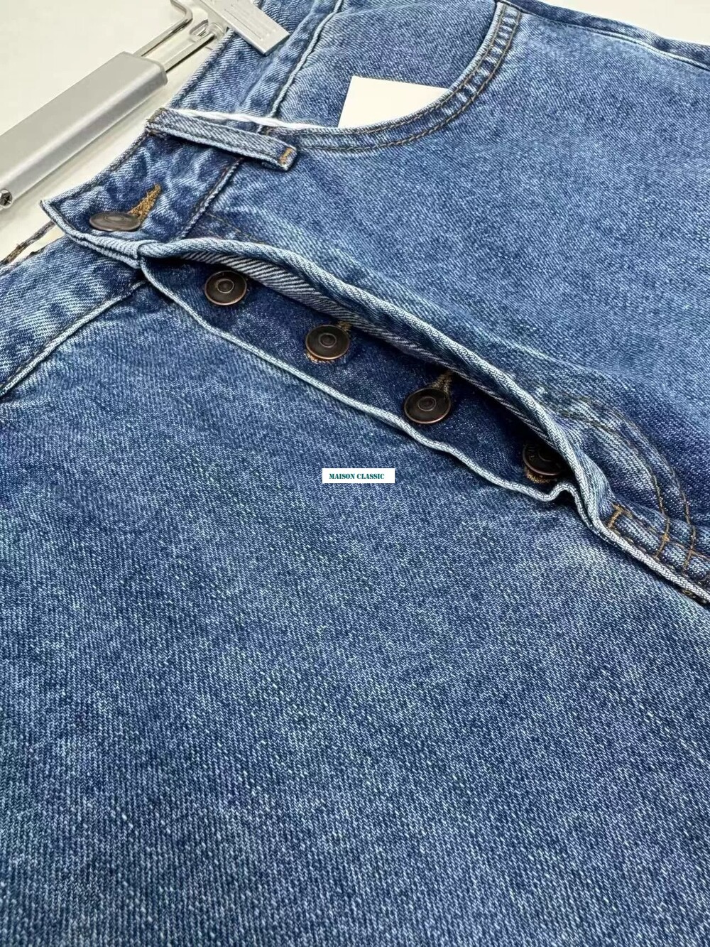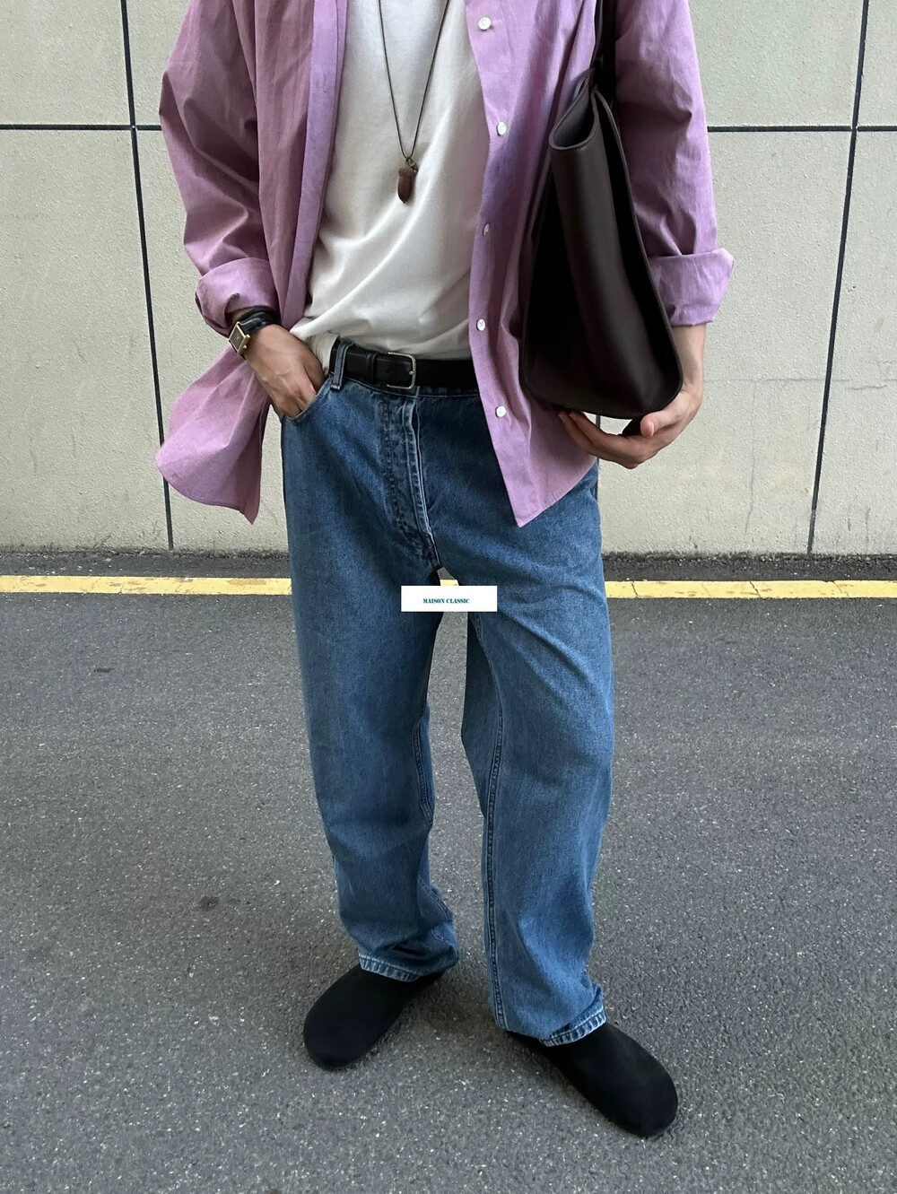 25SS 버트 진 팬츠는 스트레이트 버전으로 미드 웨이스트 디자인과 심플하고 부드러운 라인으로
