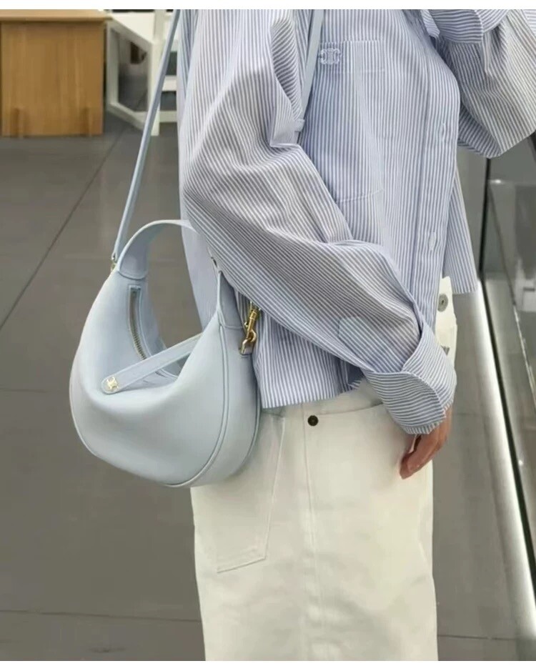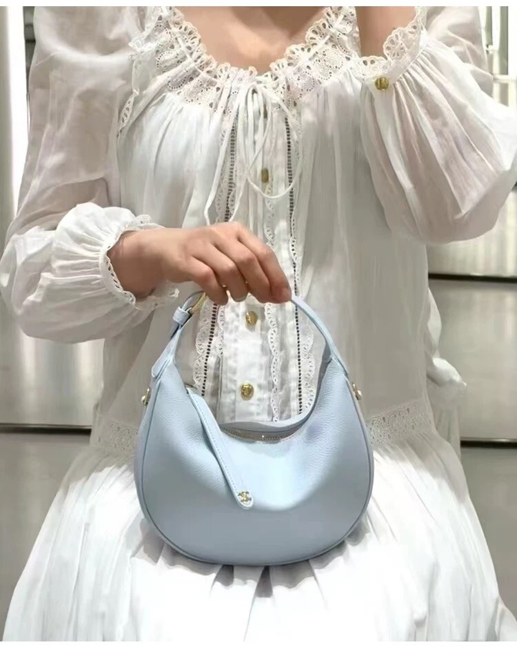 손목에 걸쳐 핸드백으로 착용하거나 탈부착 스트랩을 달아 숄더 또는 크로스로도 착용이 가능한 제품입니다