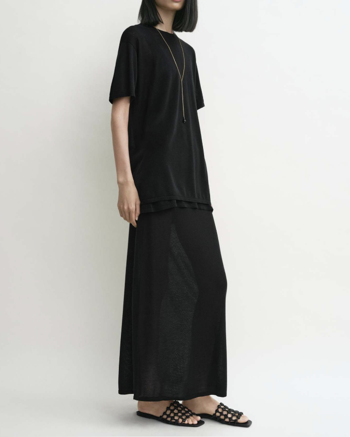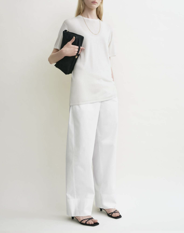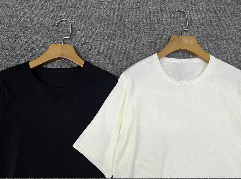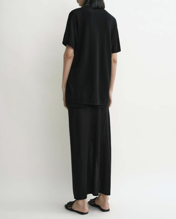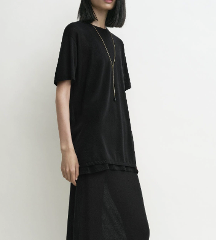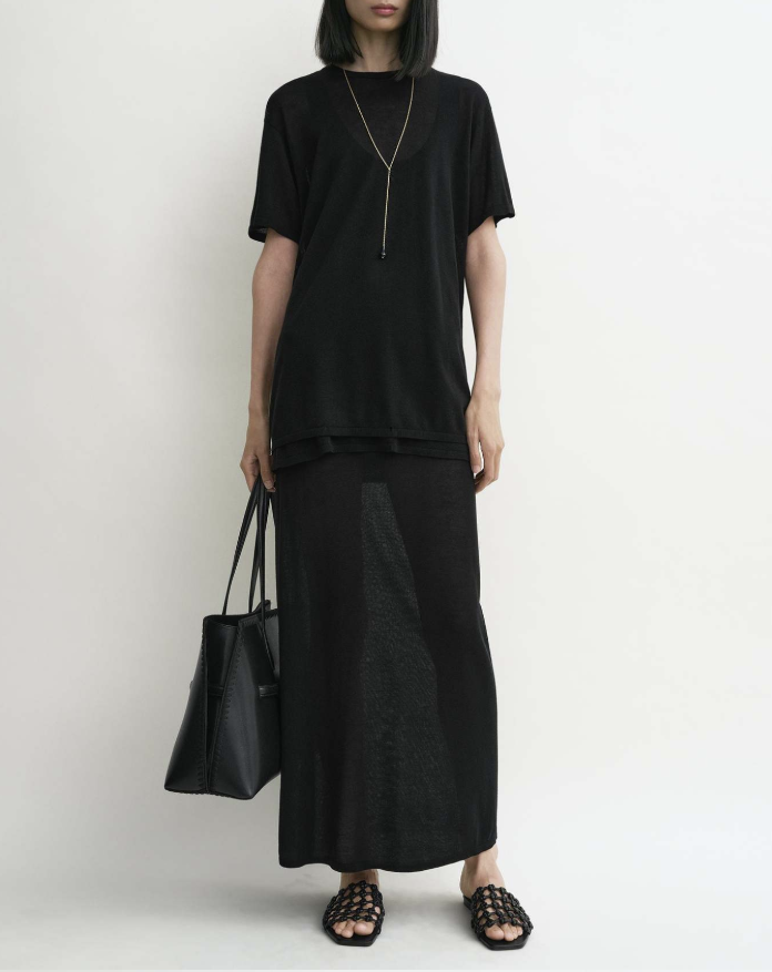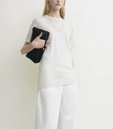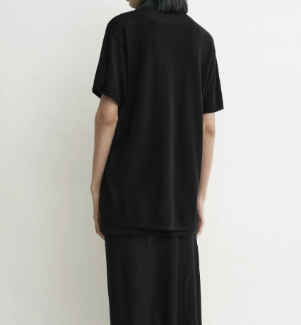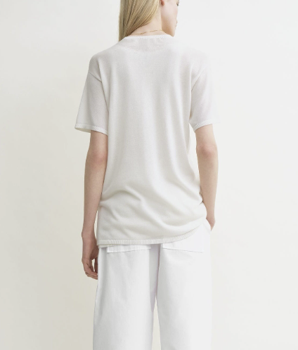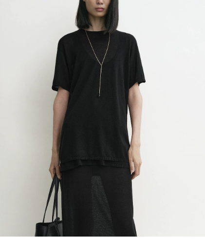 루즈핏한 라운드넥 니트 티셔츠로