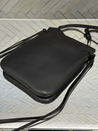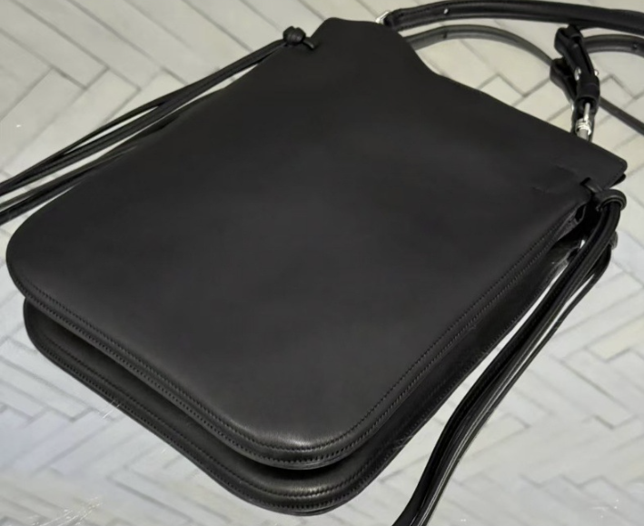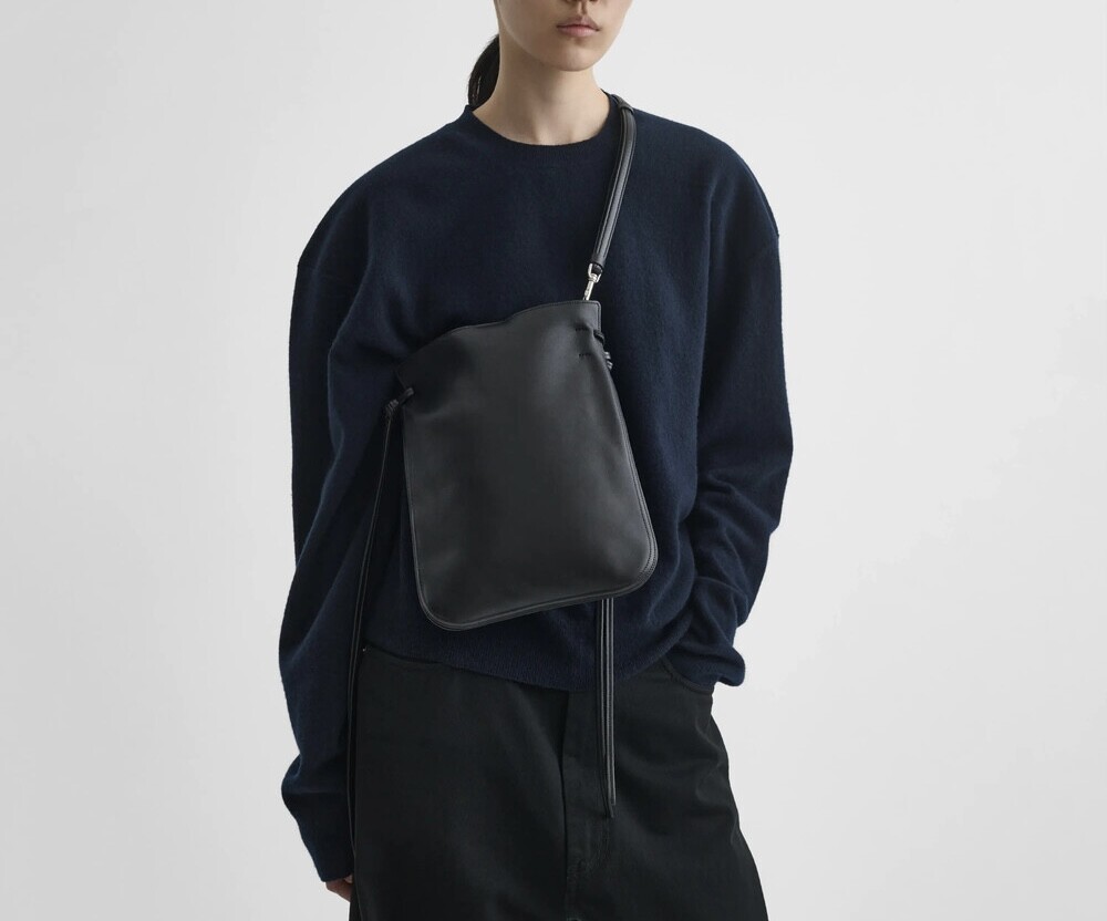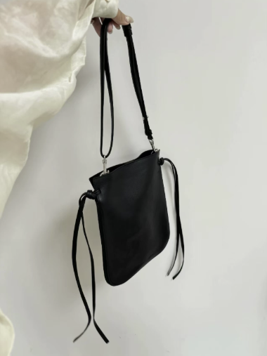 가죽 소재의 긱 파우치 숄더 백.톤온톤 스웨이드 안감과 스티칭, 실버 톤 하드웨어, 가죽 타이 디테일, 자석 잠금 장치가 특징입니다. 내부 포켓 1개와 길이 조절이 가능한 스트랩이 있어 크로스백이나 숄더백으로 착용 가능합니다.조절 및 탈부착 가능한 스트랩.네 가지 길이 옵션.실버 황동 하드웨어.내부 포켓 1개.