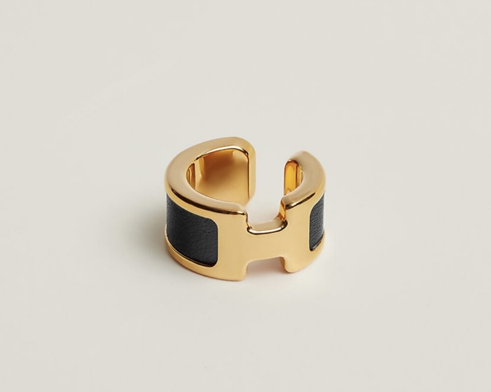 도금 하드웨어가 있는 박스형 송아지 가죽 이어 커프.