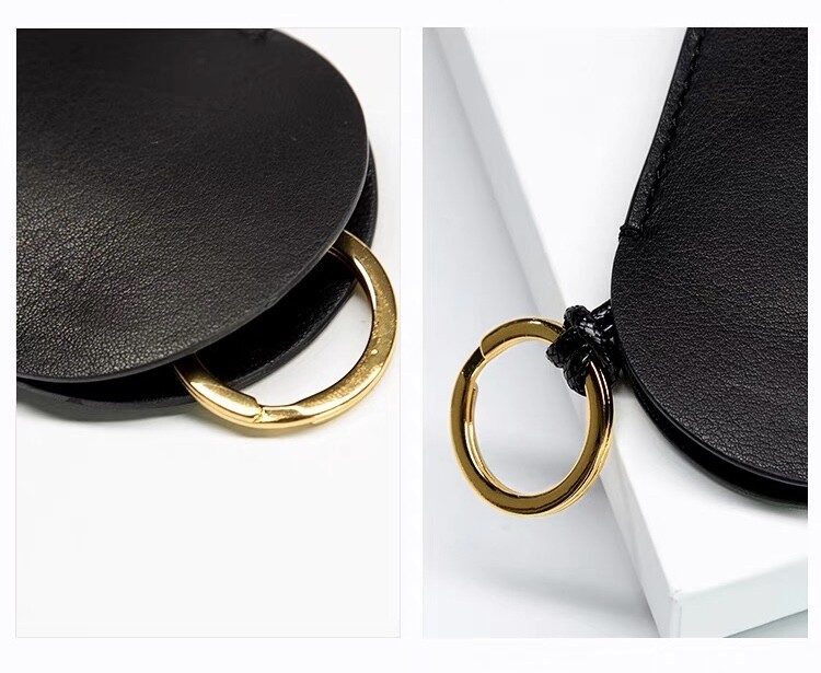 부드러운 송아지 가죽으로 덮힌 골드 톤 키링
