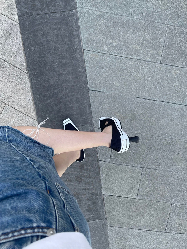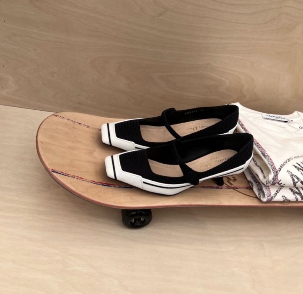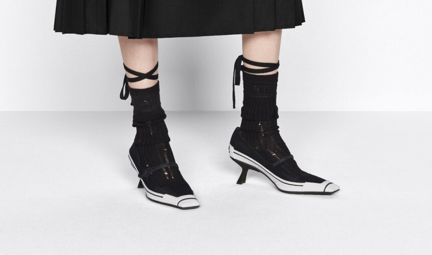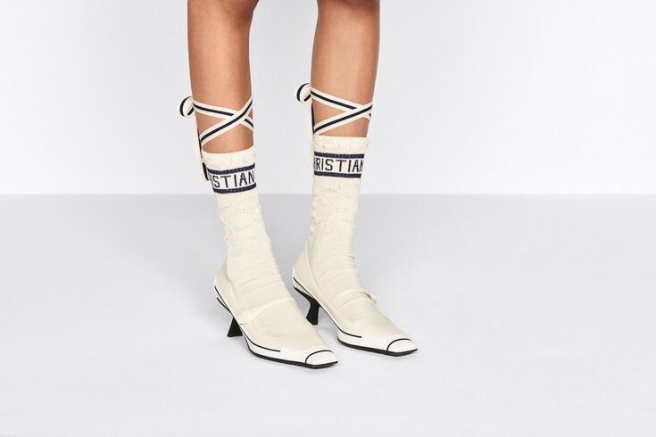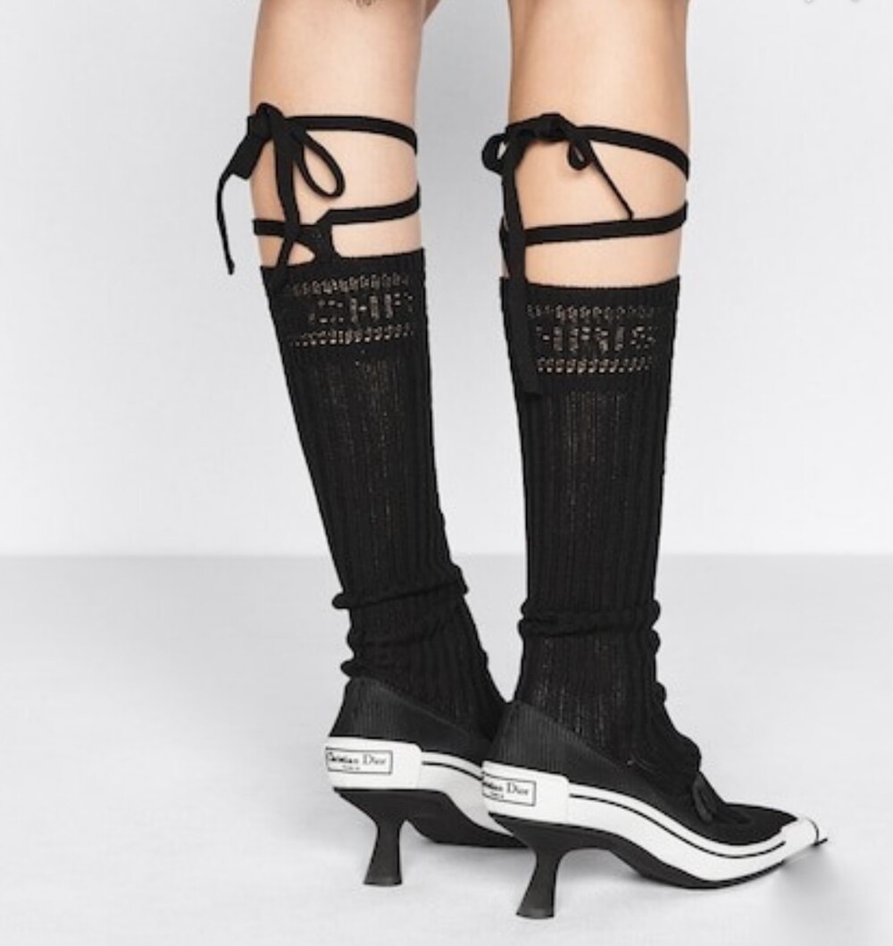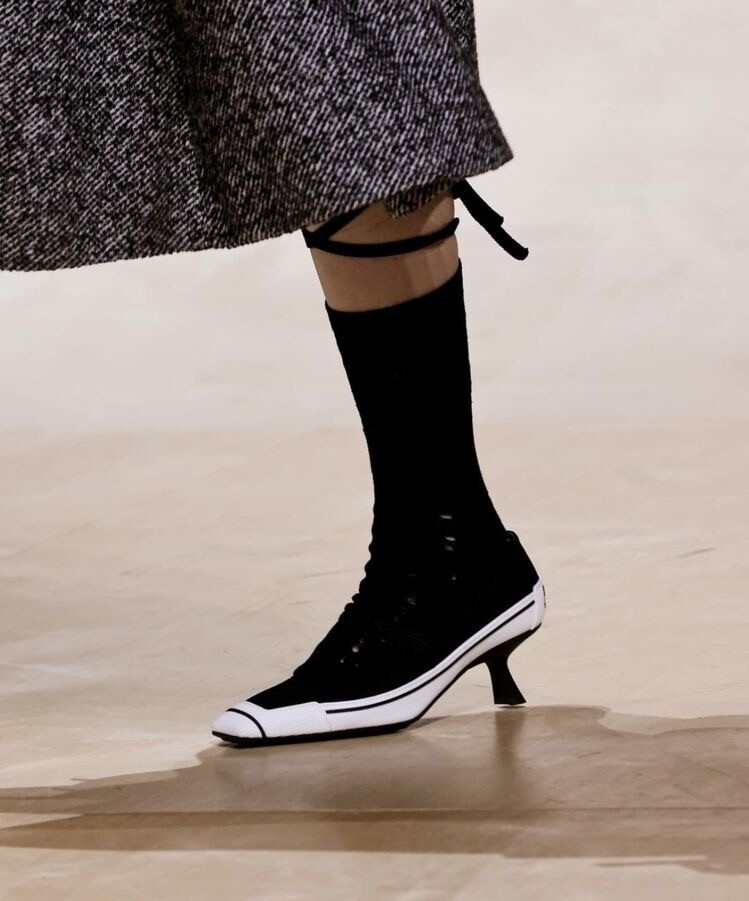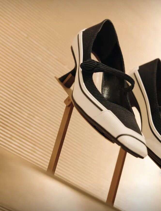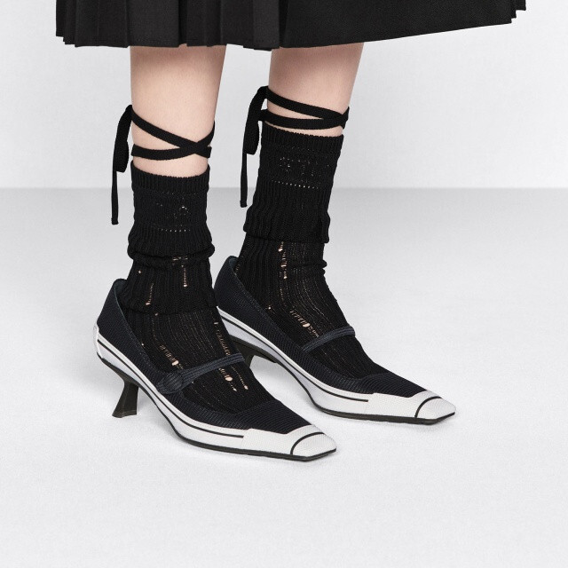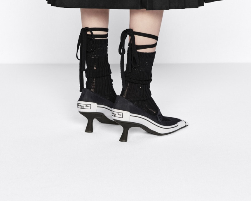 이번 컬렉션의 아이콘으로 자리매김한 아이템으로, 하이브리드 디자인에 스포츠웨어에서 빌려온 요소들과 우아한 분위기를 함께 녹여낸 D-Motion 펌프스입니다.