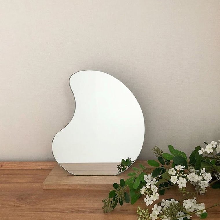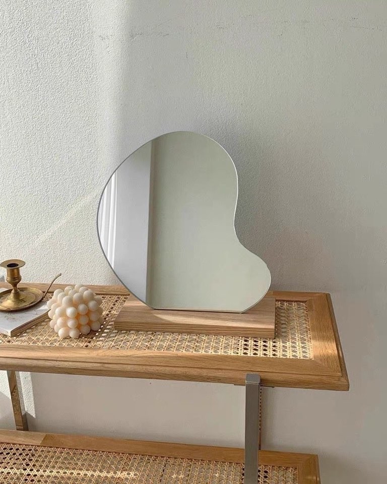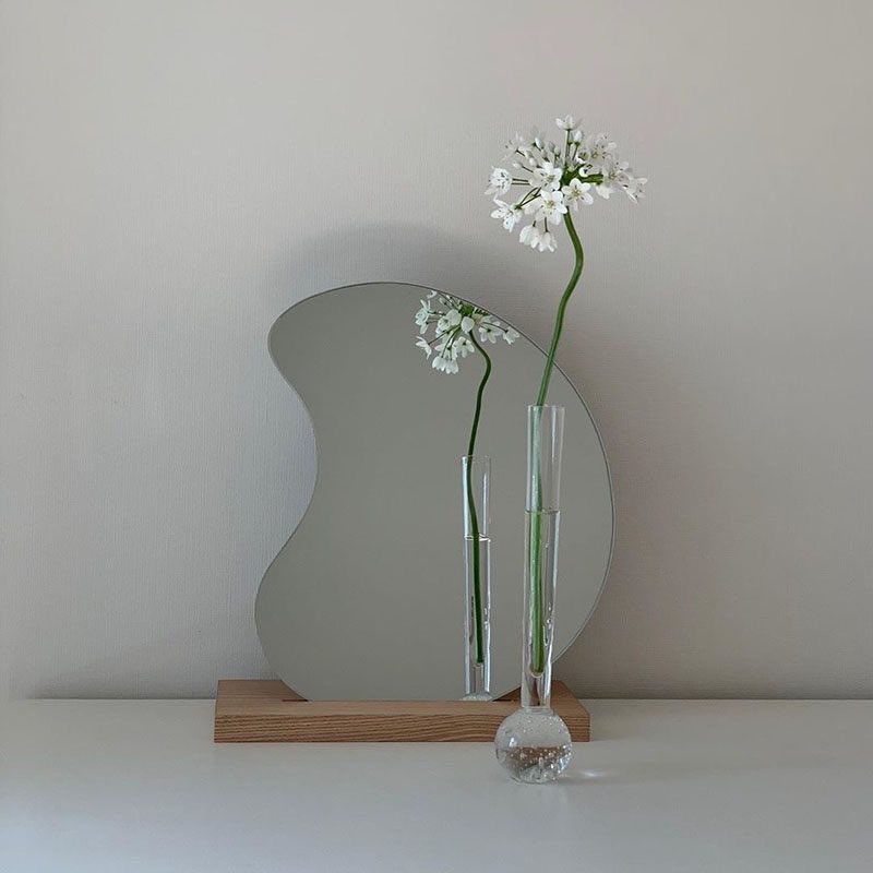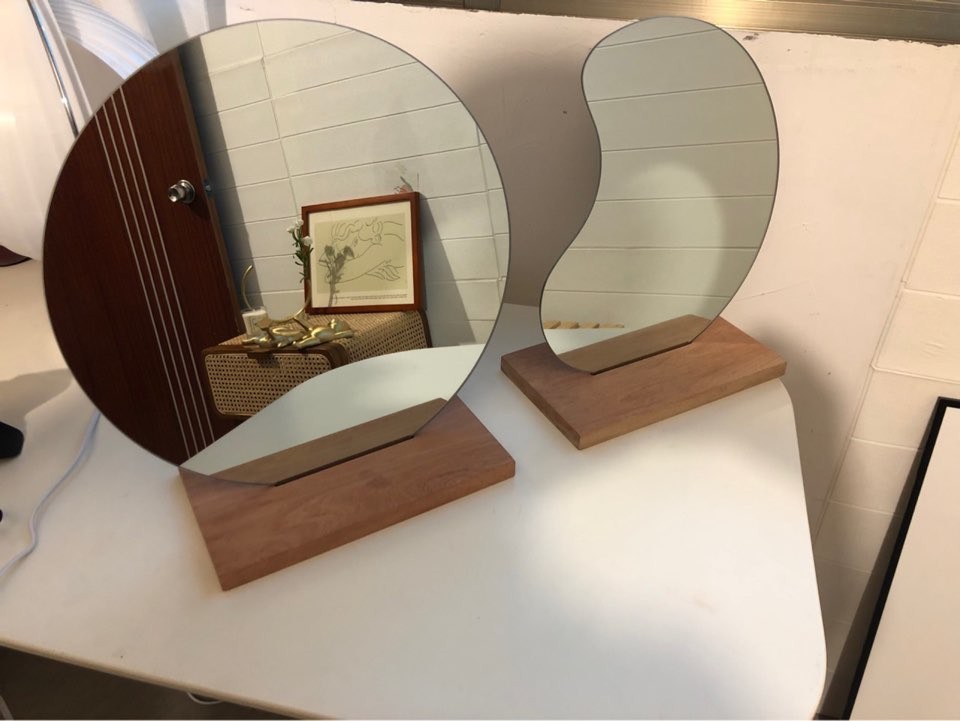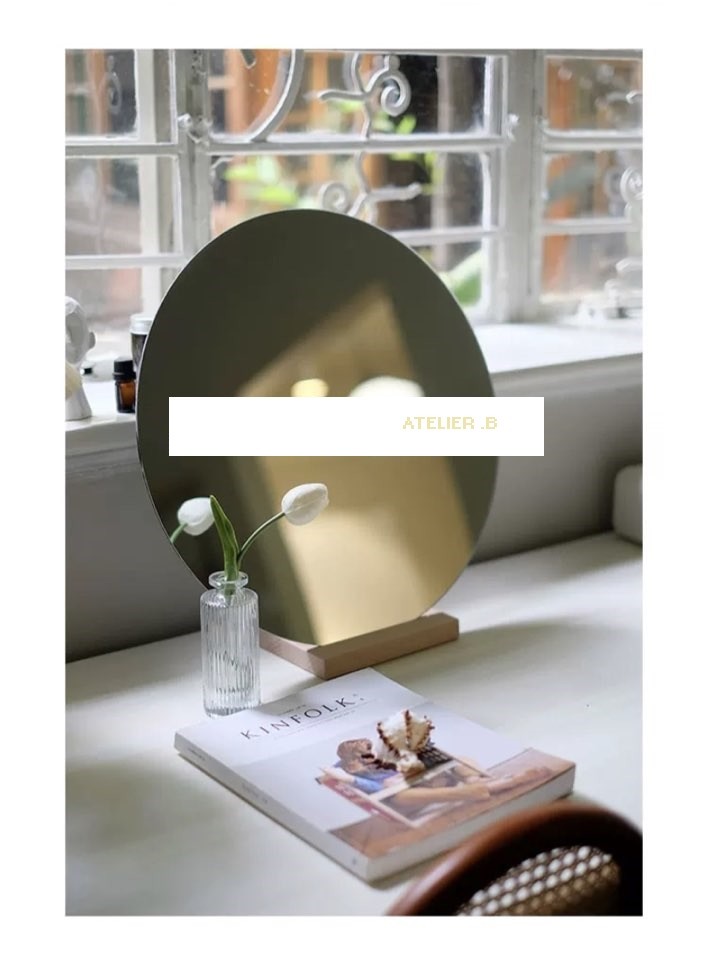북유럽 빈티지 스타일의 화이트 오크우드소재의 베이스받침의 탁상형 미러입니다.
