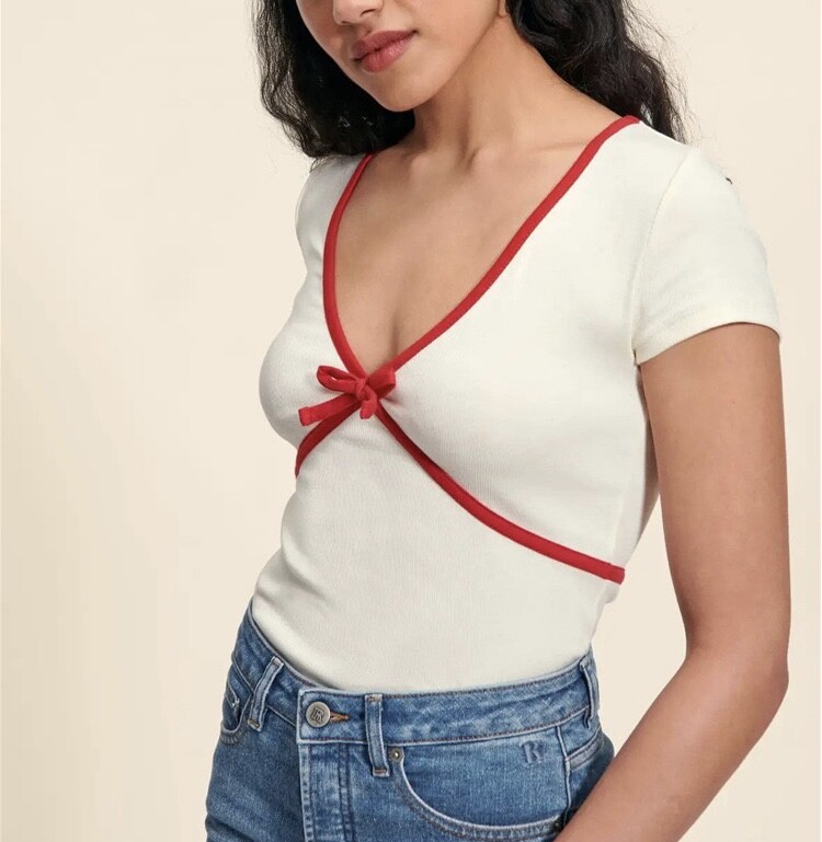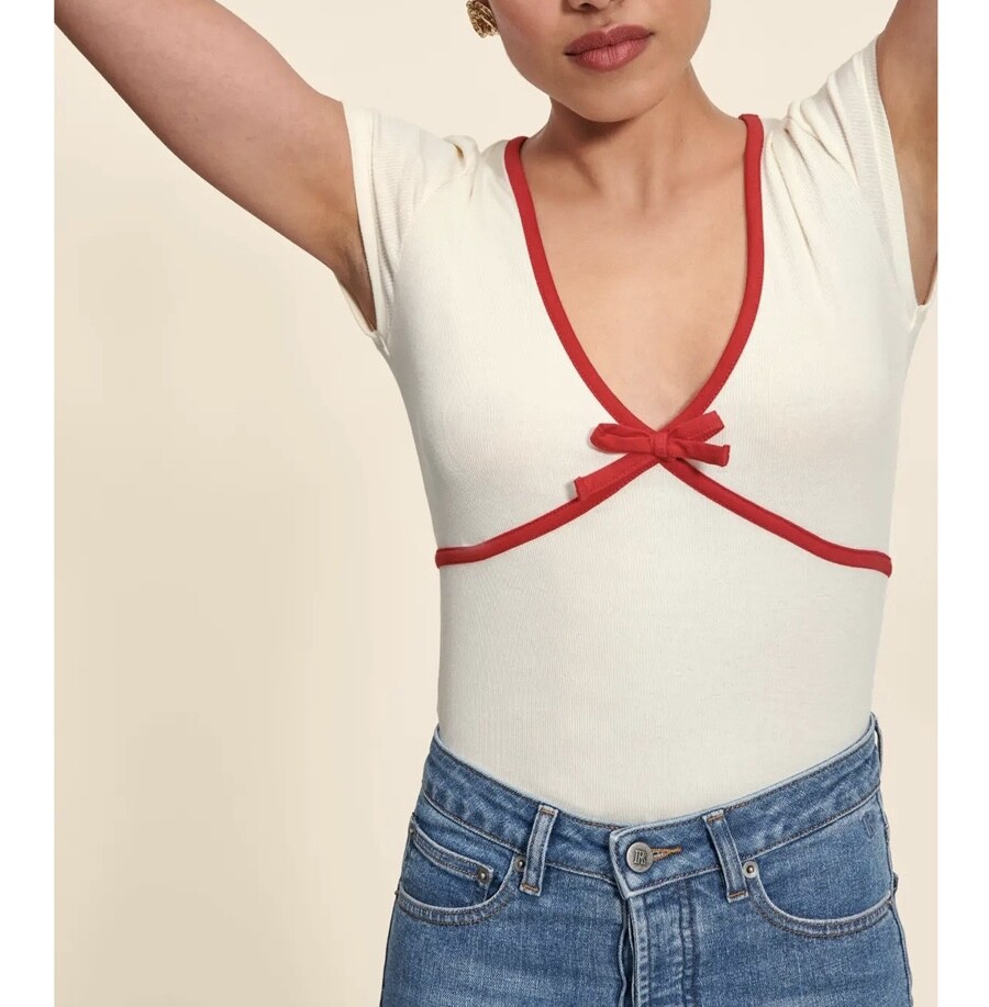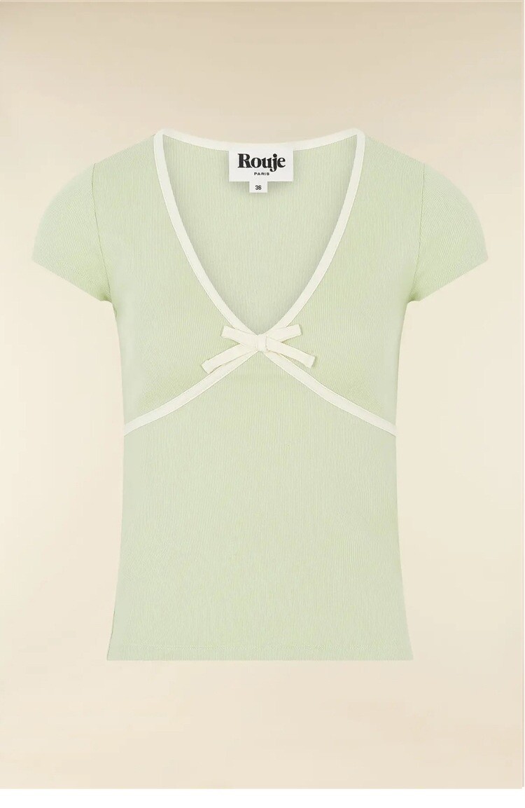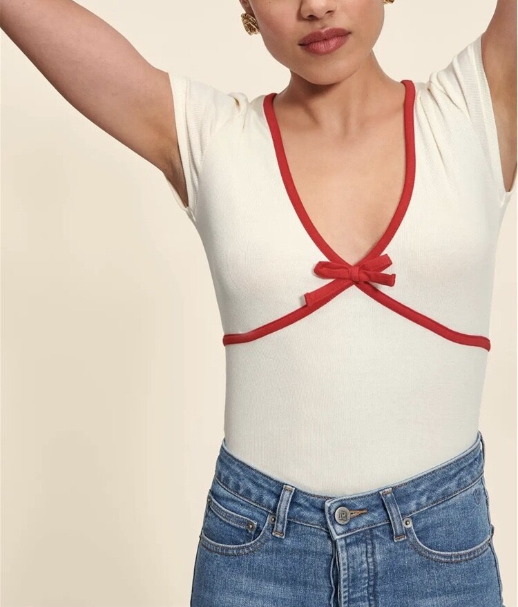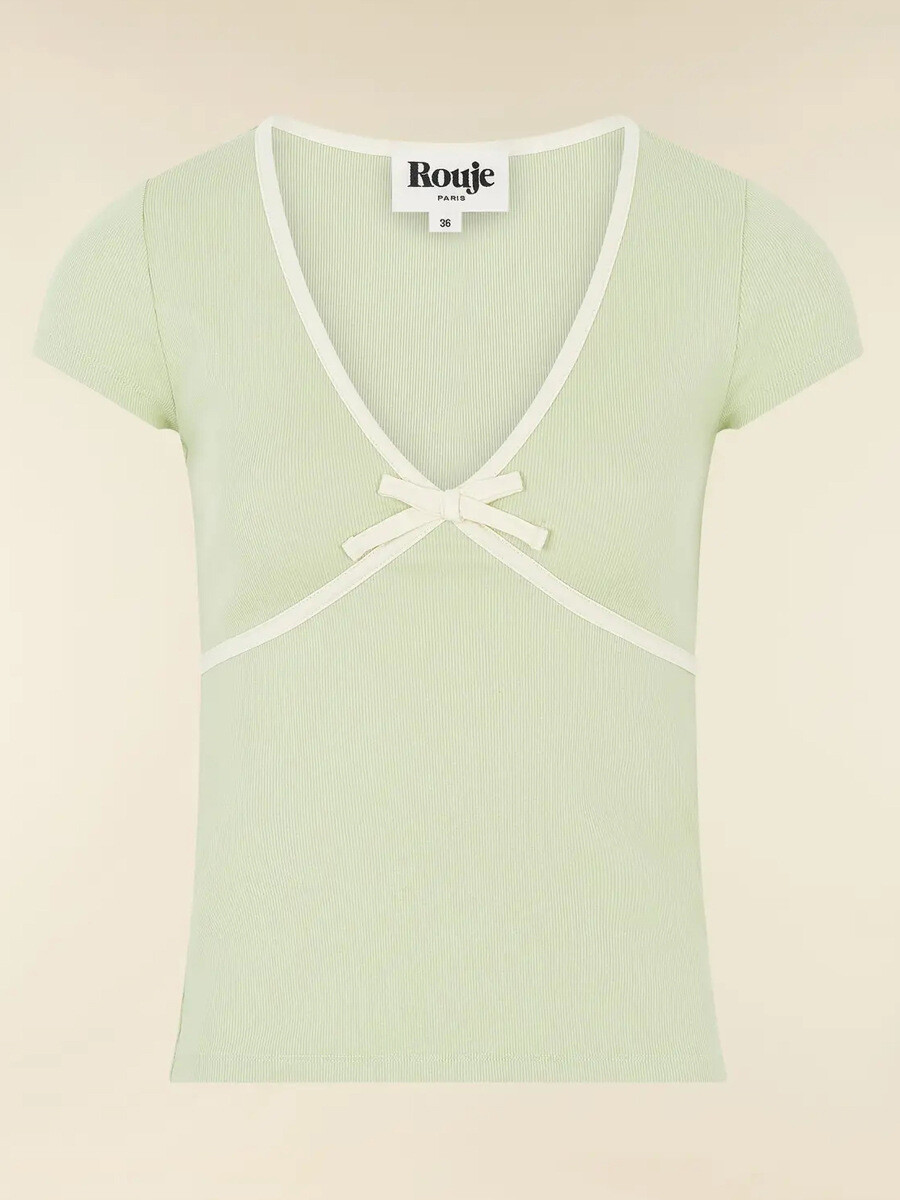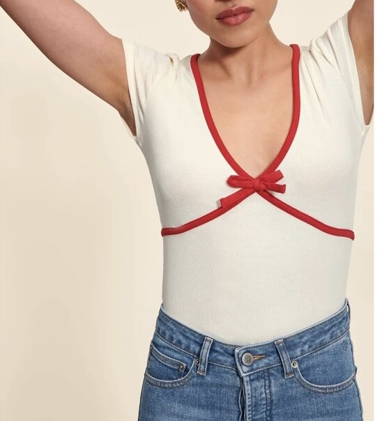 이것은 매우 여성스러운 디테일의 새로운 저지 인 Karene입니다. 핏 컷, 매혹적인 분열, 귀여운 리본: 이번 시즌의 필수 아이템.