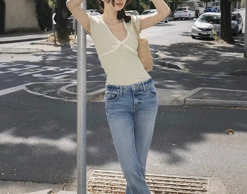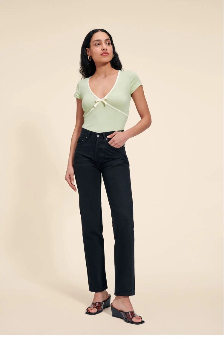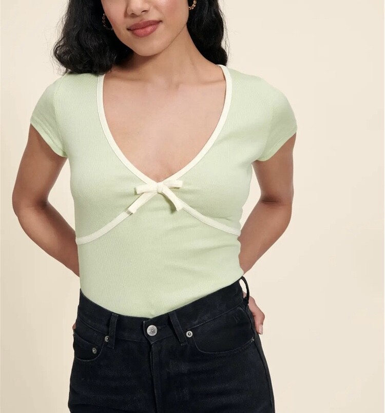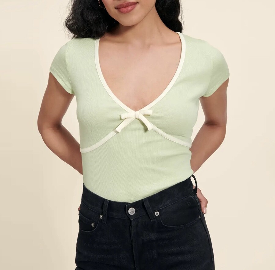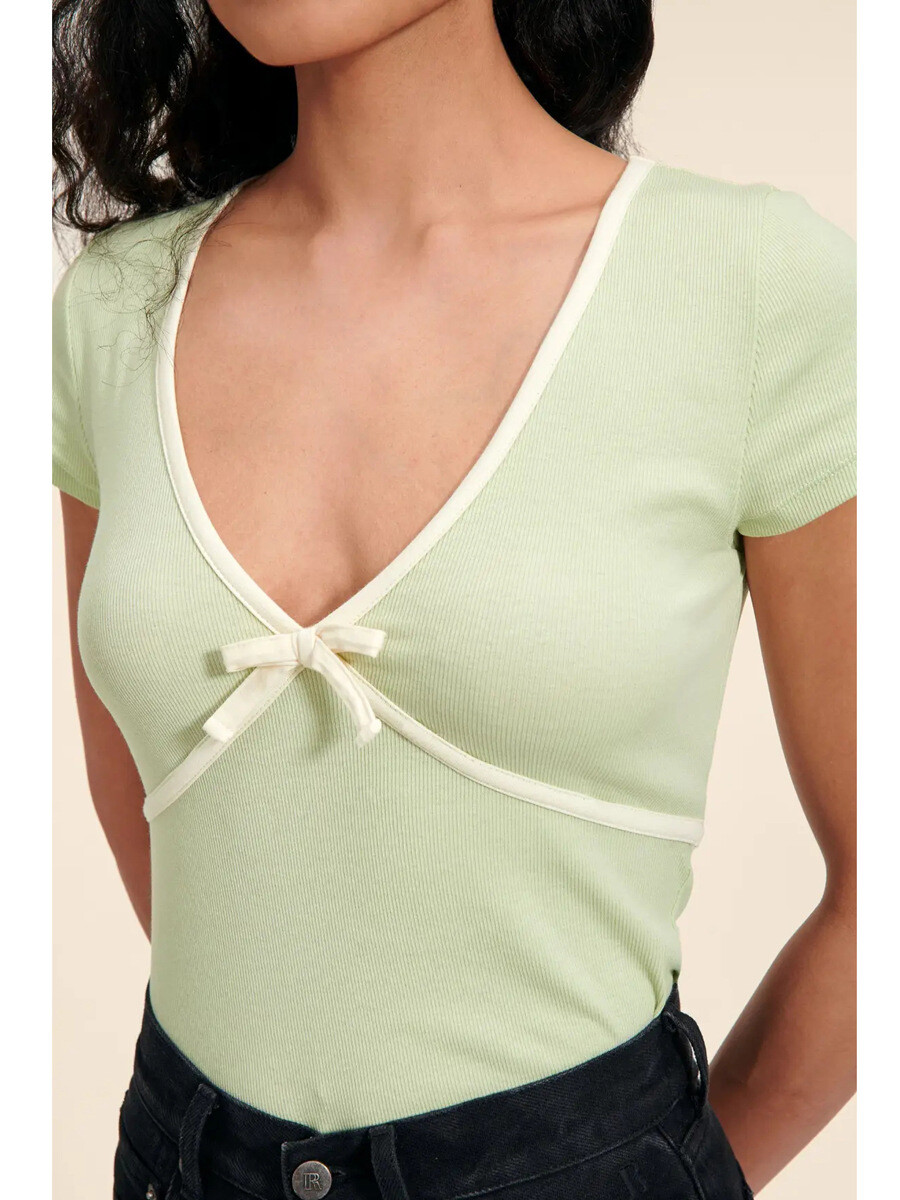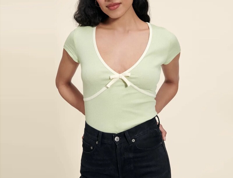 이것은 매우 여성스러운 디테일의 새로운 저지 인 Karene입니다. 핏 컷, 매혹적인 분열, 귀여운 리본: 이번 시즌의 필수 아이템.